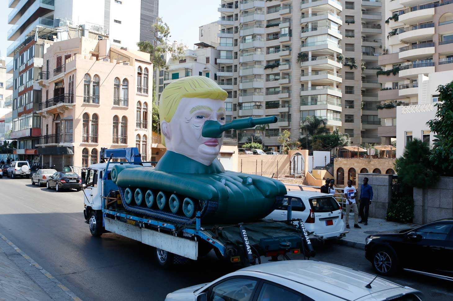 Trump-Shaped Inflatable Tank Roams the Streets of Beirut