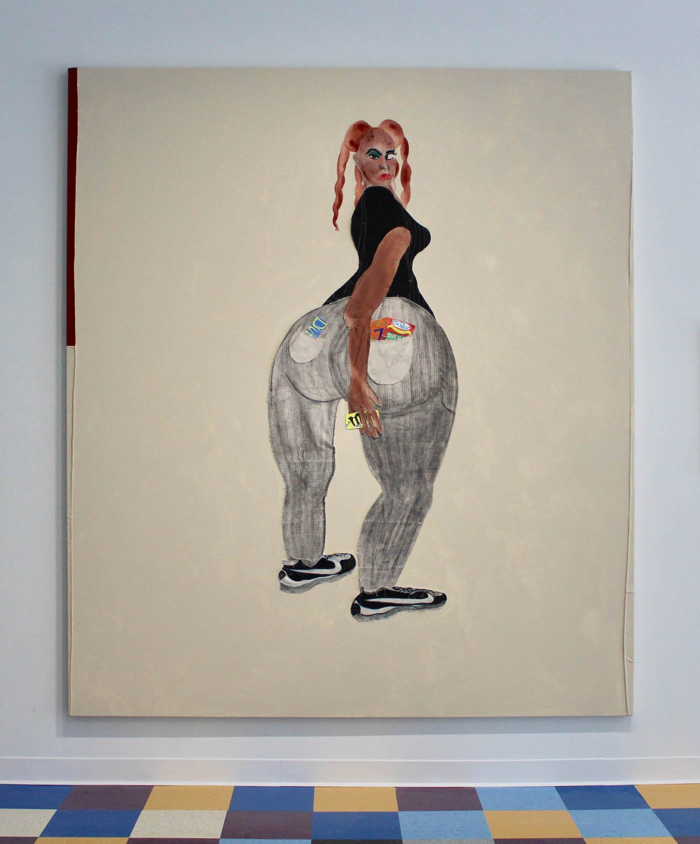 Tschabalala Self: Sour Patch, installation view (photo by the author for Hyperallergic, photo courtesy the artist and Thierry Goldberg gallery)