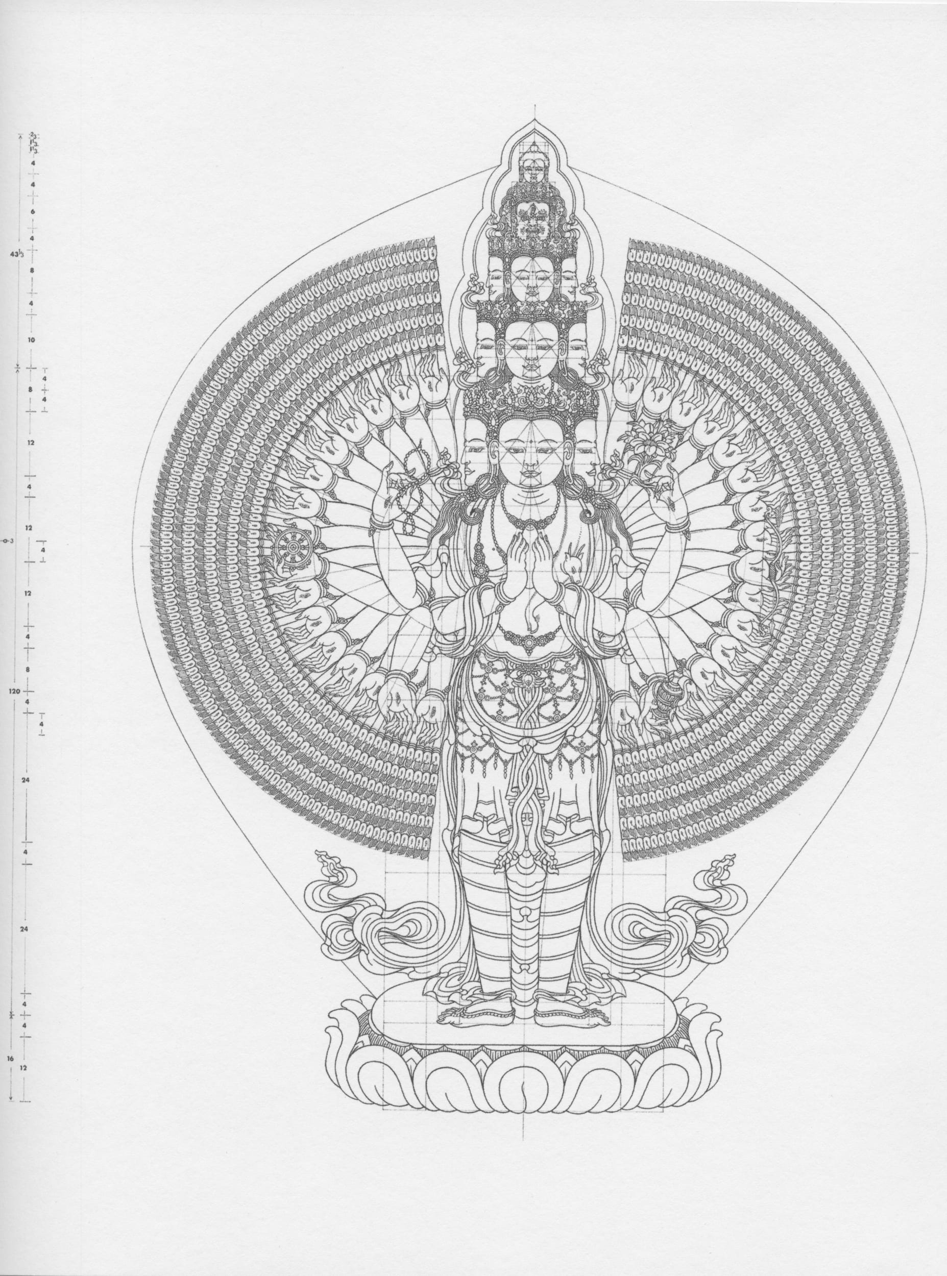 The show also includes a selection of line drawings of Tibetan motifs by British scholar Robert Beer, crisply and lucidly executed, which illustrate some of the motivic building blocks and geometrical substrates of traditional Tibetan iconography. Sherpa praises Beer’s work (“It’s really amazing”) and points out that even in Nepal, it is often used for reference by young thangka painters — and tattoo artists.