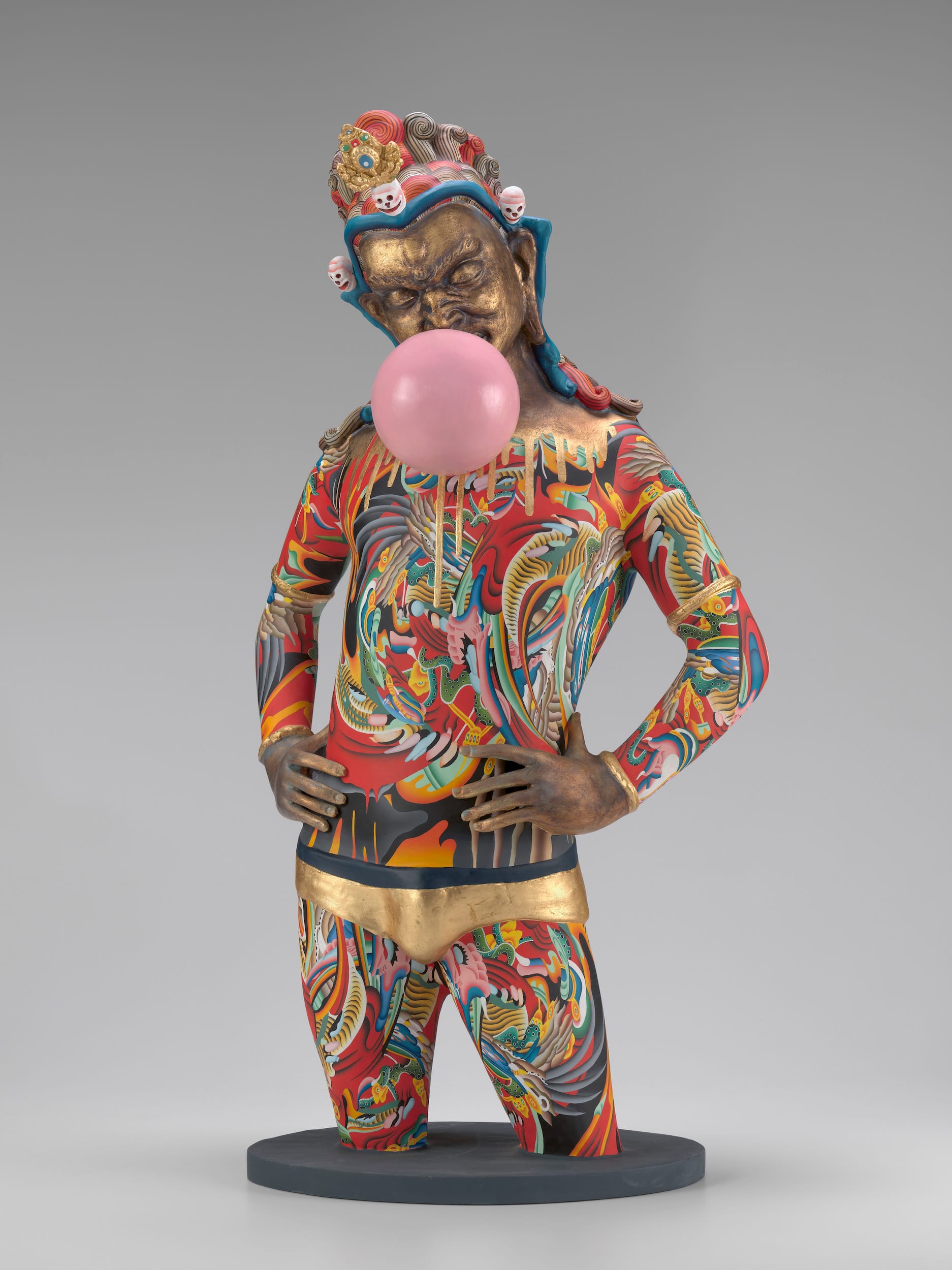 Sherpa has gained well-deserved recognition, with works in the permanent collections of US museums and a commission to represent Nepal in the country’s first Venice Biennale pavilion. Reestablishing himself in Nepal shortly before the devastating 2015 earthquake meant another shift in his conception of his career. After a friend’s daughter visited his studio and asked why the spirits were all male, he told us he realized “it’s not just about me as an individual [anymore]. It’s not just my alter ego or whatever. It should be more about the community.”