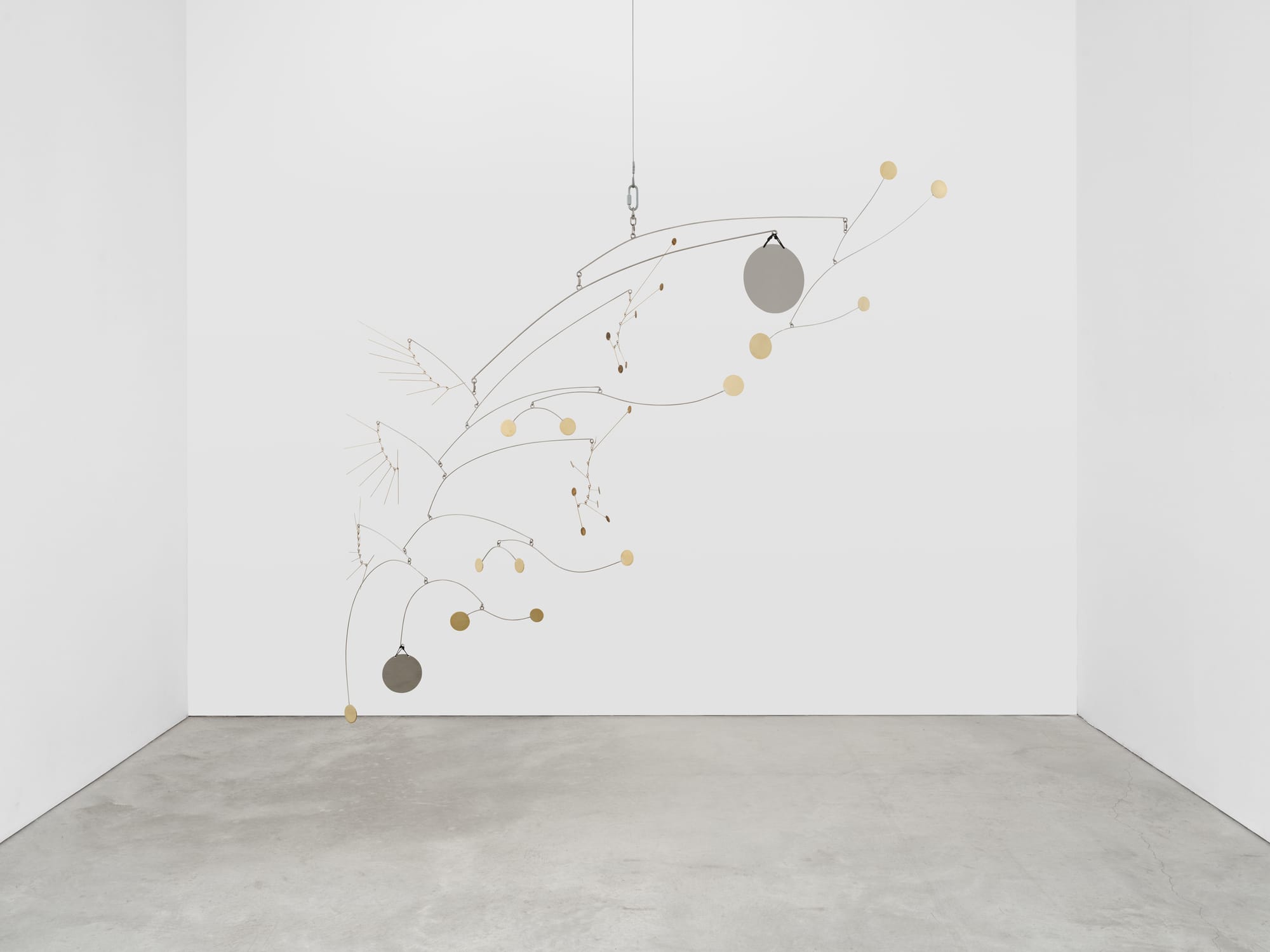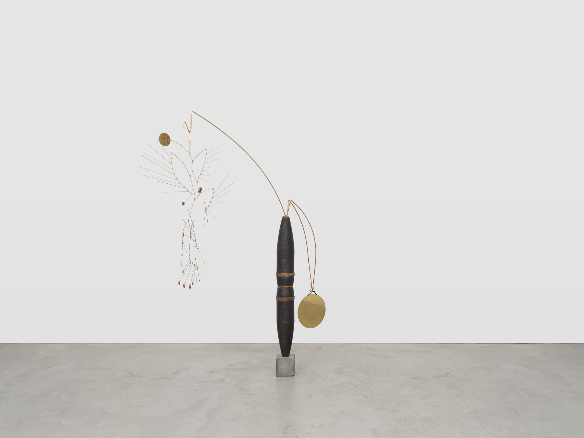 In the two rooms bookending the video installation are two Calder-esque sculptures wrought from metal bomb casings and artillery shells, one hanging from the ceiling and the other rooted to the floor. If they could speak, I wonder how they would feel about transitioning from an unwilling mercenary of war to a sleek object of contemporary art, tinkling gently with the opening and closing of gallery doors. I wonder if they would laugh at the sheer ridiculousness of being returned to their homeland for this new purpose. I wonder what they would think of their younger “brothers and sisters,” as the UXO in the film put it, wielded in endless wars all around the world, to which they are in mute, inert kinship.
