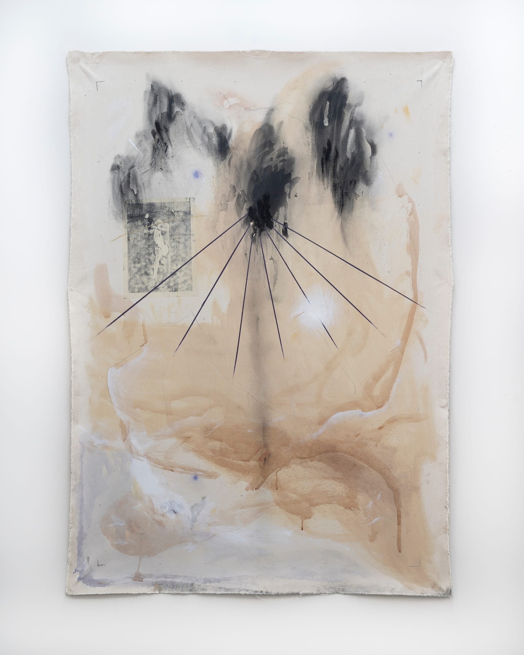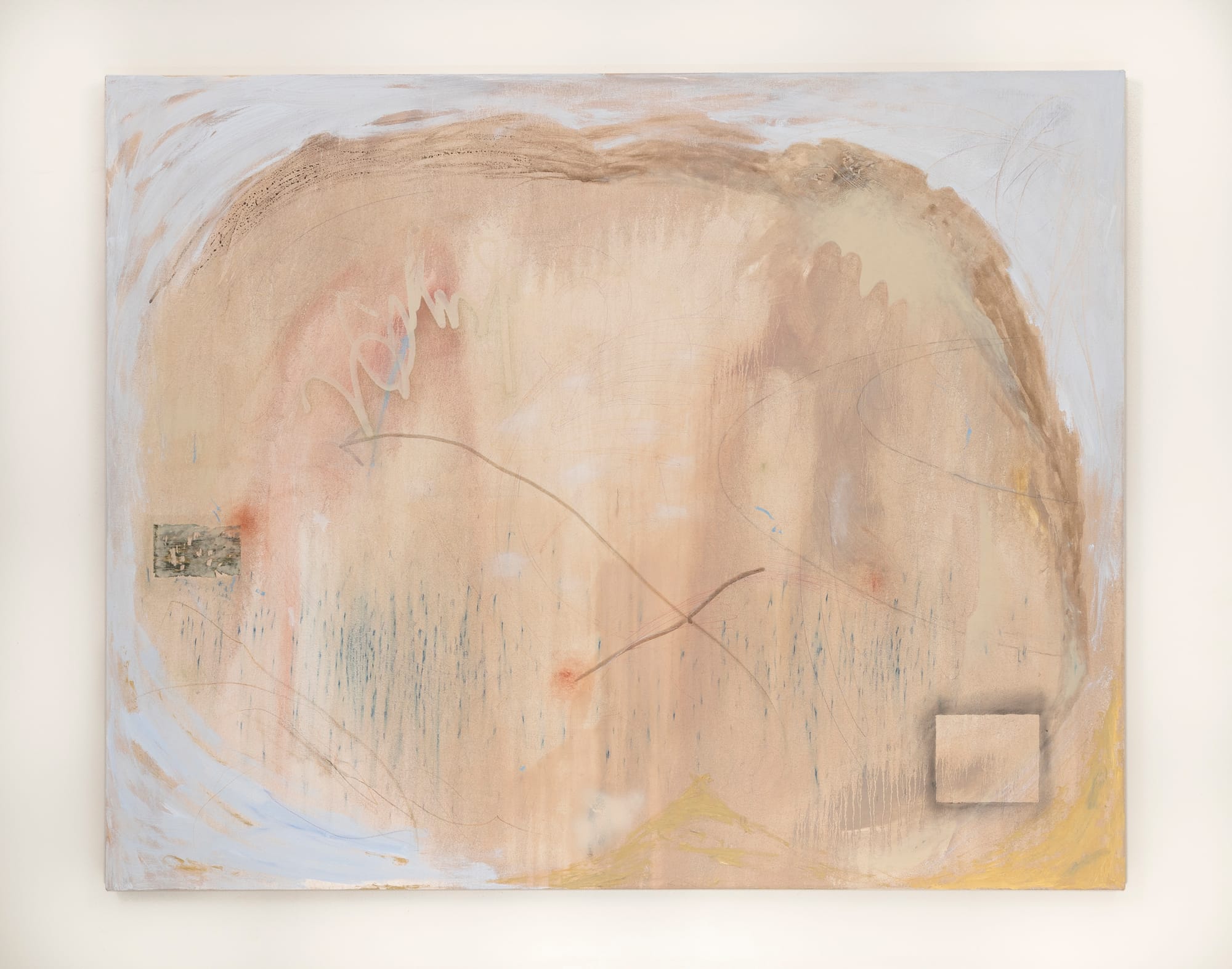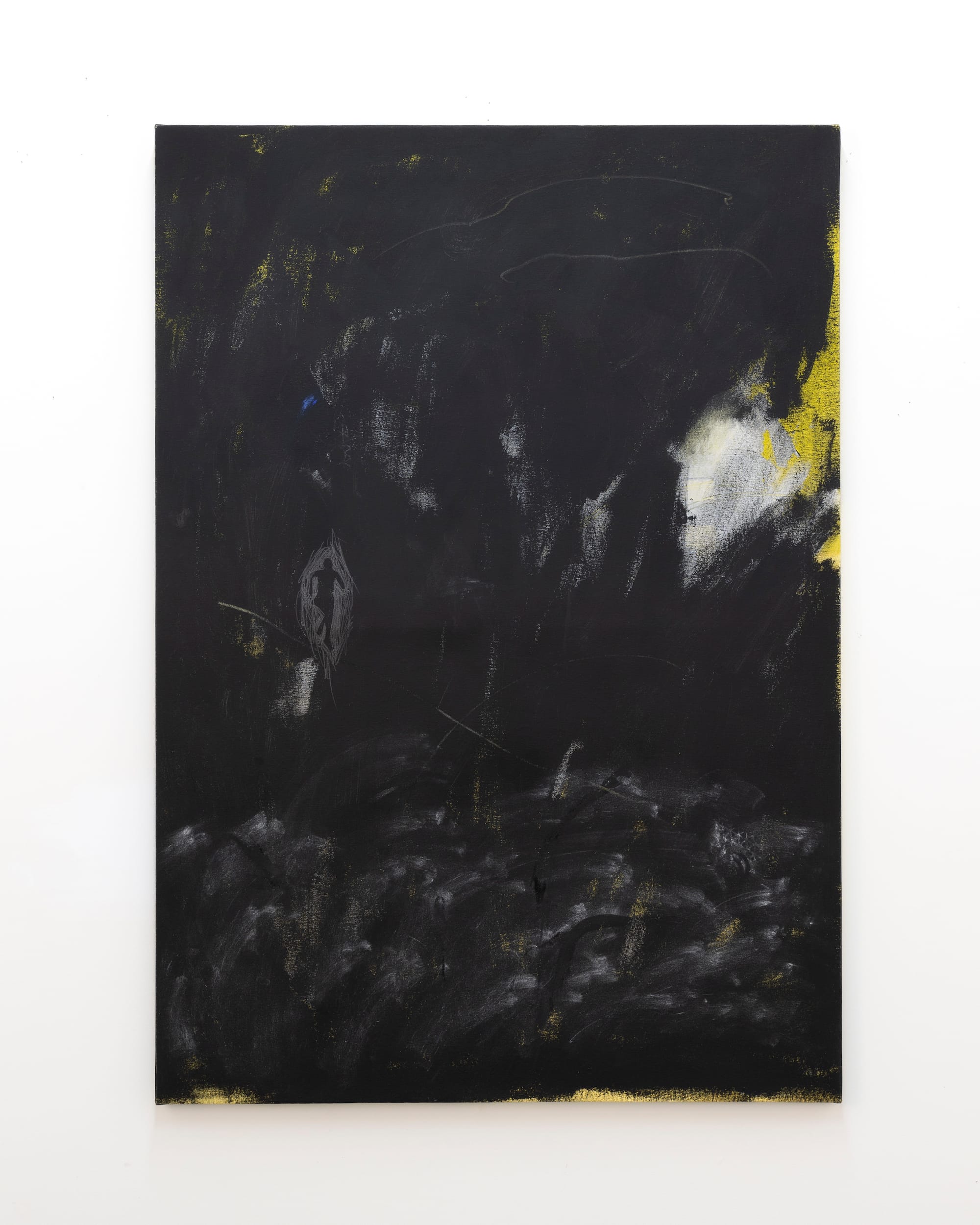 As is the case for any aesthetic and conceptual departure, her new mode of working reflects a series of internal revolutions, strung together through the process of learning to unequivocally trust her own hand and, further, to find gratification in an unabashed painterly confidence — which might also be described as a willingness to refuse the project of “making sense.” To this end, she notes: “Abandoning that feeling of familiarity in a figurative image allowed me to rely more on my mark making as a language.” Undoubtedly, Adkins has developed an unshakable faith that the visual chorus surging from her hands will manifest into an image that, even in the absence of a physical body, approximates what it feels like to, as Powell did, take flight. Ultimately, her work is an invitation to inhabit the ether and to embody the indeterminacy as Blackness itself.