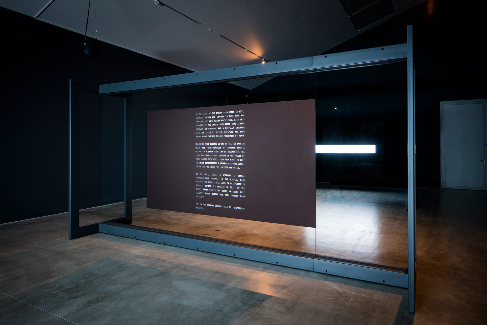 Voice, and sound more broadly, is at the core of Lawrence Abu Hamdan’s work too. A self-titled “private ear,” 34-year-old Hamdan has collaborated with human rights groups like Amnesty International and Forensic Architecture (nominees for last year’s prize) on investigations into the role of sound in crime. The three works in his presentation draw on his research on a Syrian prison-turned-death-camp called Saydnaya, where inmates were tortured for making even the slightest noise. A lightbox shows a “spectrograph” of the volume of three former detainees’ voices before and after the Syrian Revolution, when speaking became punishable by death. In two videos, After SFX and Walled Unwalled (both 2018), Hamdan describes how sound is distorted in our memory and the ways in which it interacts with space and architecture. If any artwork can make you shut up and listen, it’s this one.