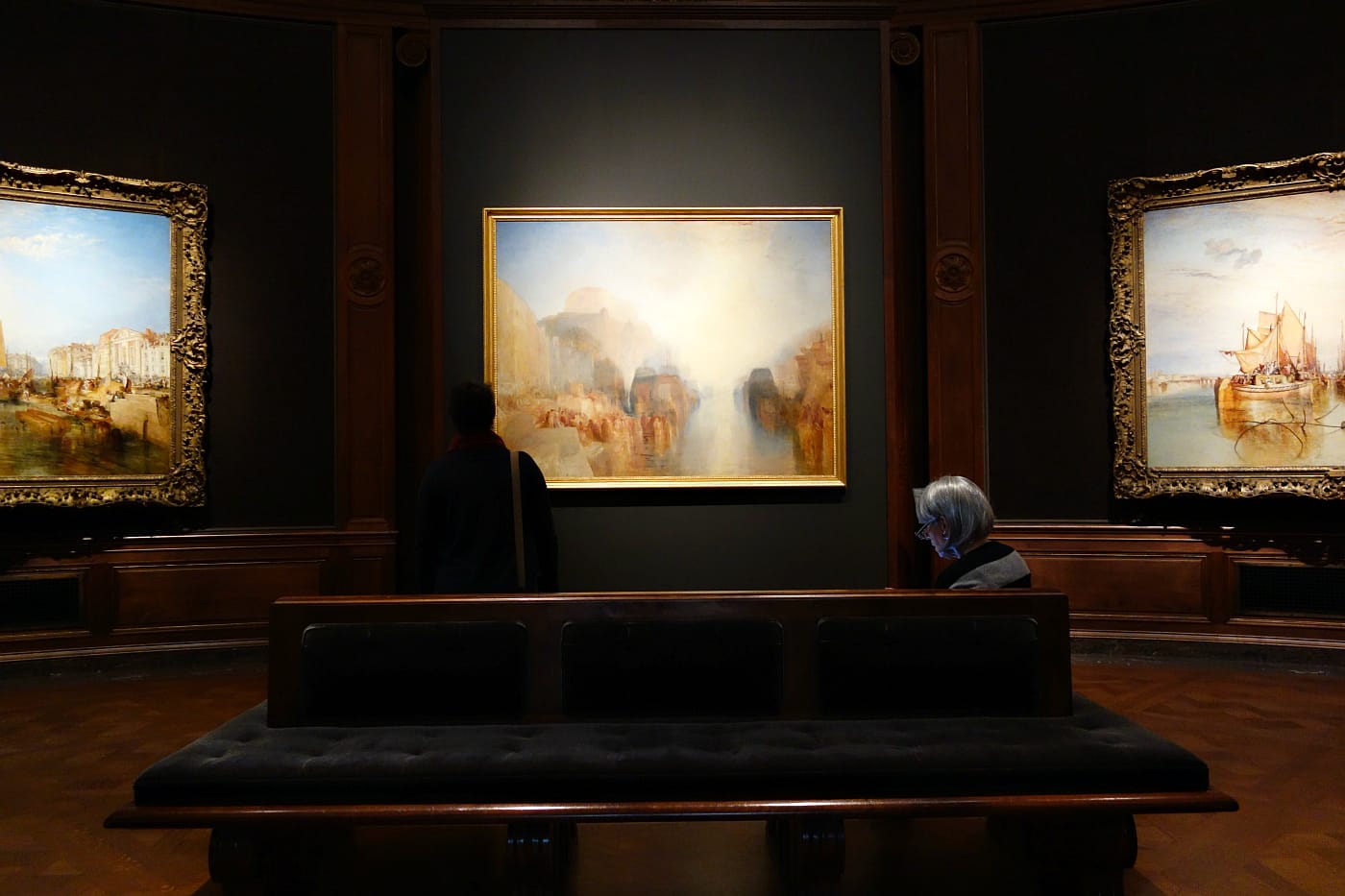The three “contemporary” ports of the 1820s were painted at a time of mass industrialization, when European seasides were bustling with new steamships and manufacturing hubs. However, Turner’s people and sleepy sail-powered ships seem to come from a pre-steam past. “He represented them at a point just before disappearing,” said Galassi at the preview.