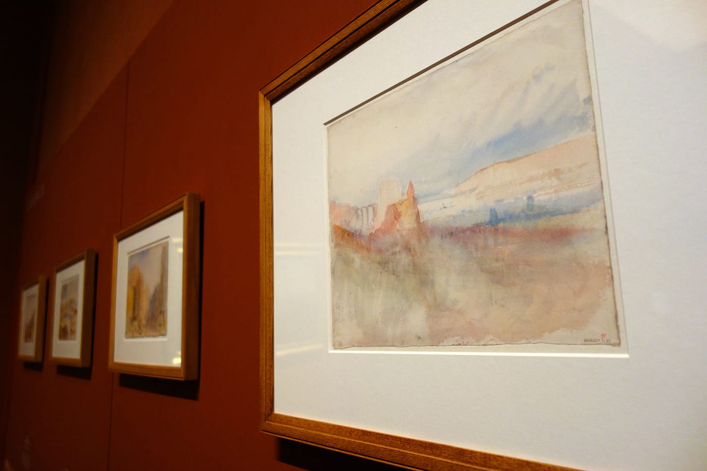 In the accompanying catalogue released by Yale University Press, Ian Warrell describes Turner’s seascapes as “poetic topography.” In the second gallery, over 30 watercolors and prints on loan from the Tate, MFA Boston, Baltimore Museum of Art, Harvard Art Museums, Seattle Art Museum, and other institutions further illustrate this romantic perspective, often painted so that the viewer feels as though they’re a voyager riding a vessel into port. Warrell writes in his essay: