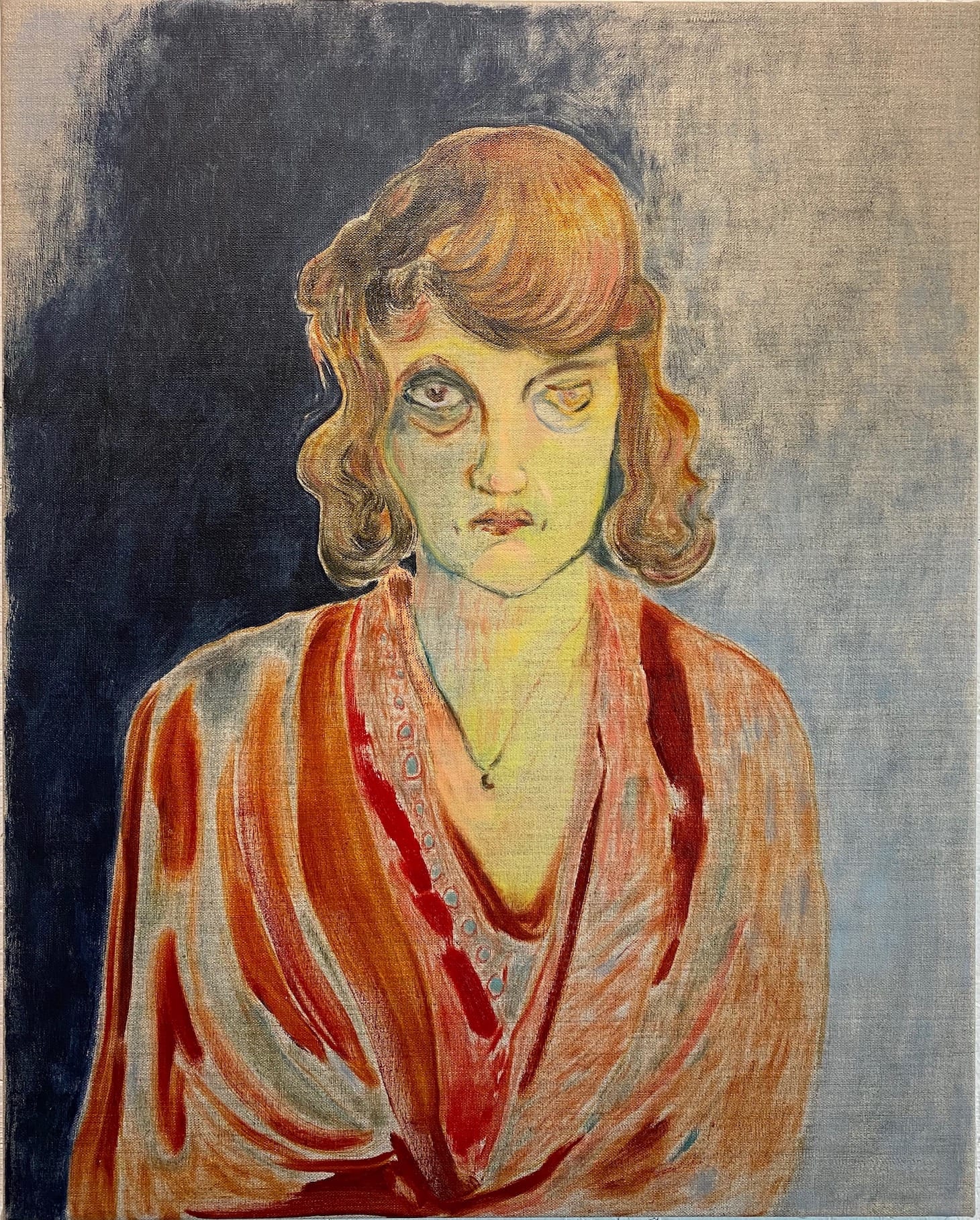 For several years now, the Los Angeles-based artist Hayley Barker, who lives and works in Crestview, has taken a more introspective approach to the intersection of art and spirituality. Her paintings, typically oil on linen and a colorist’s dream, carry an intense emotional weight that gives depth to the subjugation that their female subjects experience. For instance, in “Astrology” (2020), exhibited in February at the BozoMag booth of Art Los Angeles Contemporary’s 2020 fair, Barker depicts the German-Jewish painter Charlotte Salomon, who was murdered by the Nazis, using Salomon’s own self-portrait as the basis of the work. In the painting, Salomon confronts the viewer with her bright eyes and angular bone structure, with the word “Astrology” simply painted onto the surface, as though Barker were communicating with Salomon through the stars. Says Barker of the piece, “Looking at her portrait now, (and the self-portraits of other painters) I suspect that we somehow wear our traumas all over our faces. And that includes traumas that have yet to come.” More recently, in the wake of George Floyd’s killing, Barker painted “Still Angry” (2020), in which an anonymous woman stares directly at the viewer, her fair skin marred with a sickly tinge of green, yellow, and blue. She appears despondent yet determined. “Anger is a spiritual project,” Barker said over email.