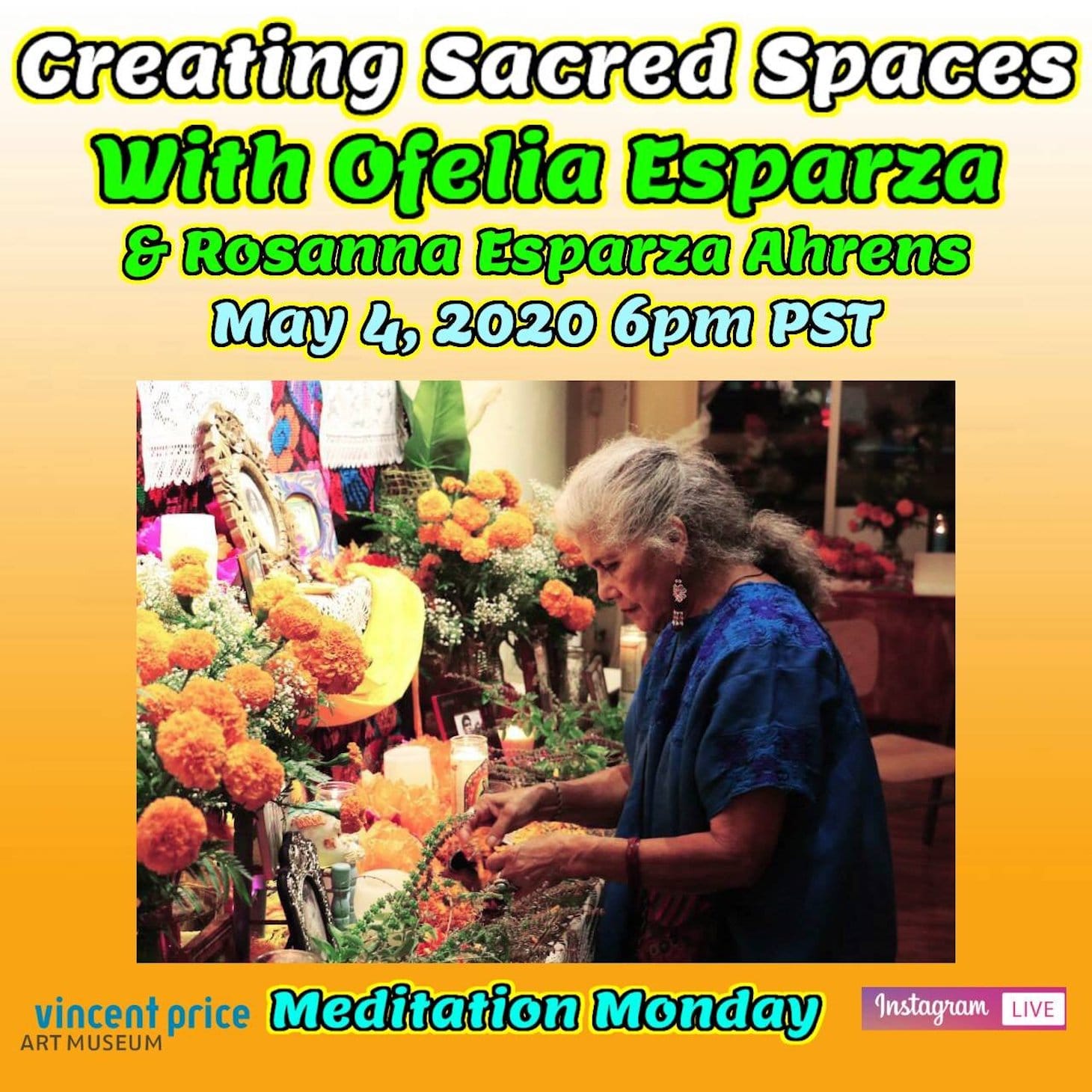 Much of Frías’s work revolves around community empowerment and collaboration. For many of the Meditation Mondays sessions, for instance, they invited artists and friends as co-presenters. Artist Asher Hartman accompanied Frías on one livestream in which Hartman performed intuitive readings of viewers’ submitted names, telling one viewer that inhabiting her name made him feel like he was in “a bucket seat above the world.” Spoken passionately with his head thrown back and arms outstretched, the readings are charming and captivating. Frías followed up the readings by drawing and interpreting tarot on the same name. In another, Frías was joined by artists Ofelia Esparza and Rosanna Esparza Ahrens on the topic of creating sacred spaces, with the intention that viewers could learn about the process, its potential in self-care practice, and create their own.