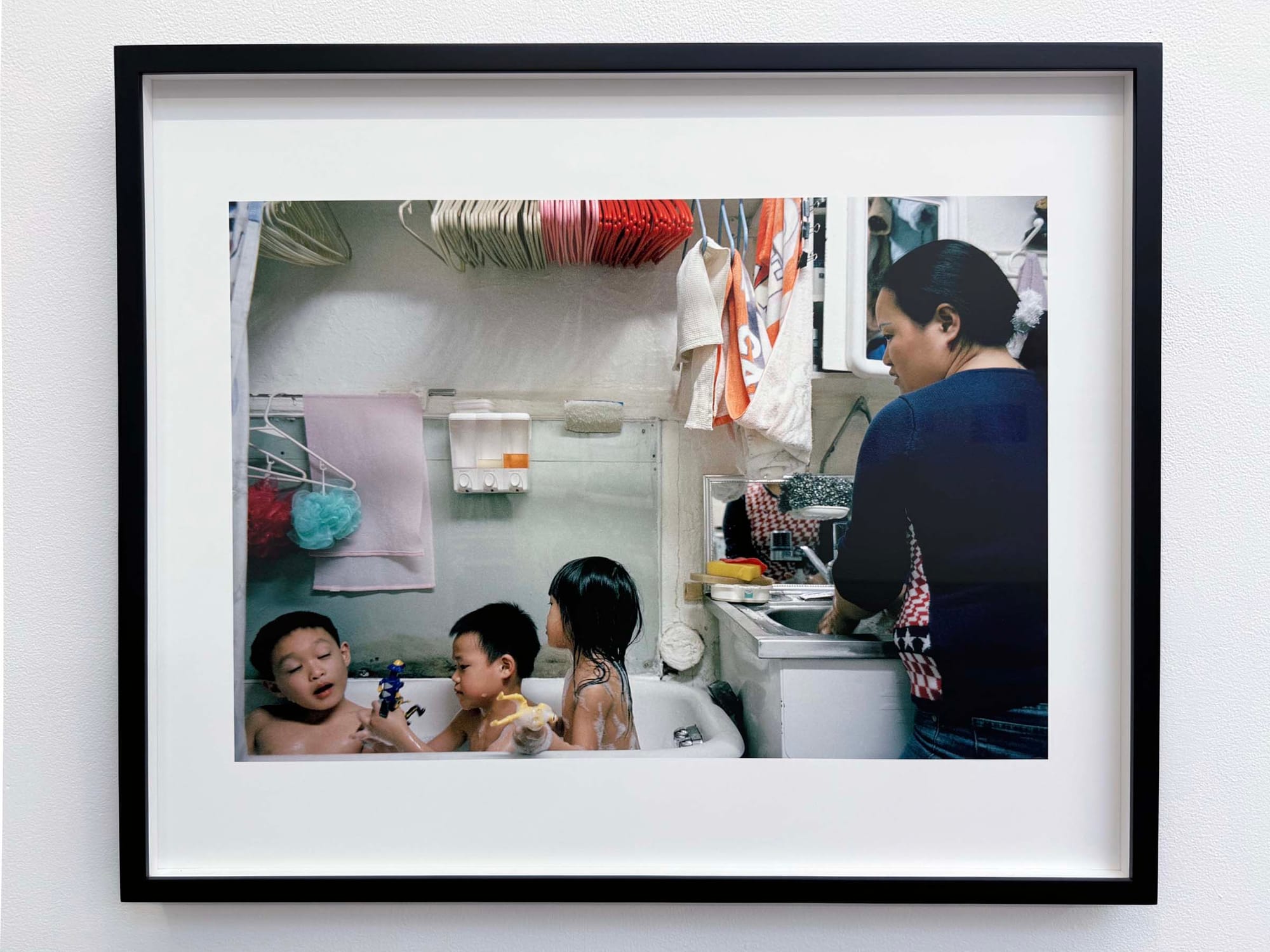 I first saw a selection of these photos in May 2021, just a year after the police murder of George Floyd ignited international protests and racial reckoning. We were still in the thick of COVID-19, and its attendant rise in hate crimes against Asians. Across two-week iterations, four photographs — "Bath Time,” “Waiting for Dinner” (2011), “After Swimming” (2013), and “Watching ‘Black Mirror’” (all in this show)— were exhibited at Home gallery, a storefront window on Ludlow Street. As I wrote in a review for the Brooklyn Rail, I was initially discomfited by what I perceived to be a voyeuristic gaze, central to photography in general but particular to a photographer who wanted to understand himself better through his subjects. I was soothed after talking to Michael Lam, the oldest of the siblings, who spoke of Holton as an “uncle” who babysat the children while young and drove them to college a decade or more later.