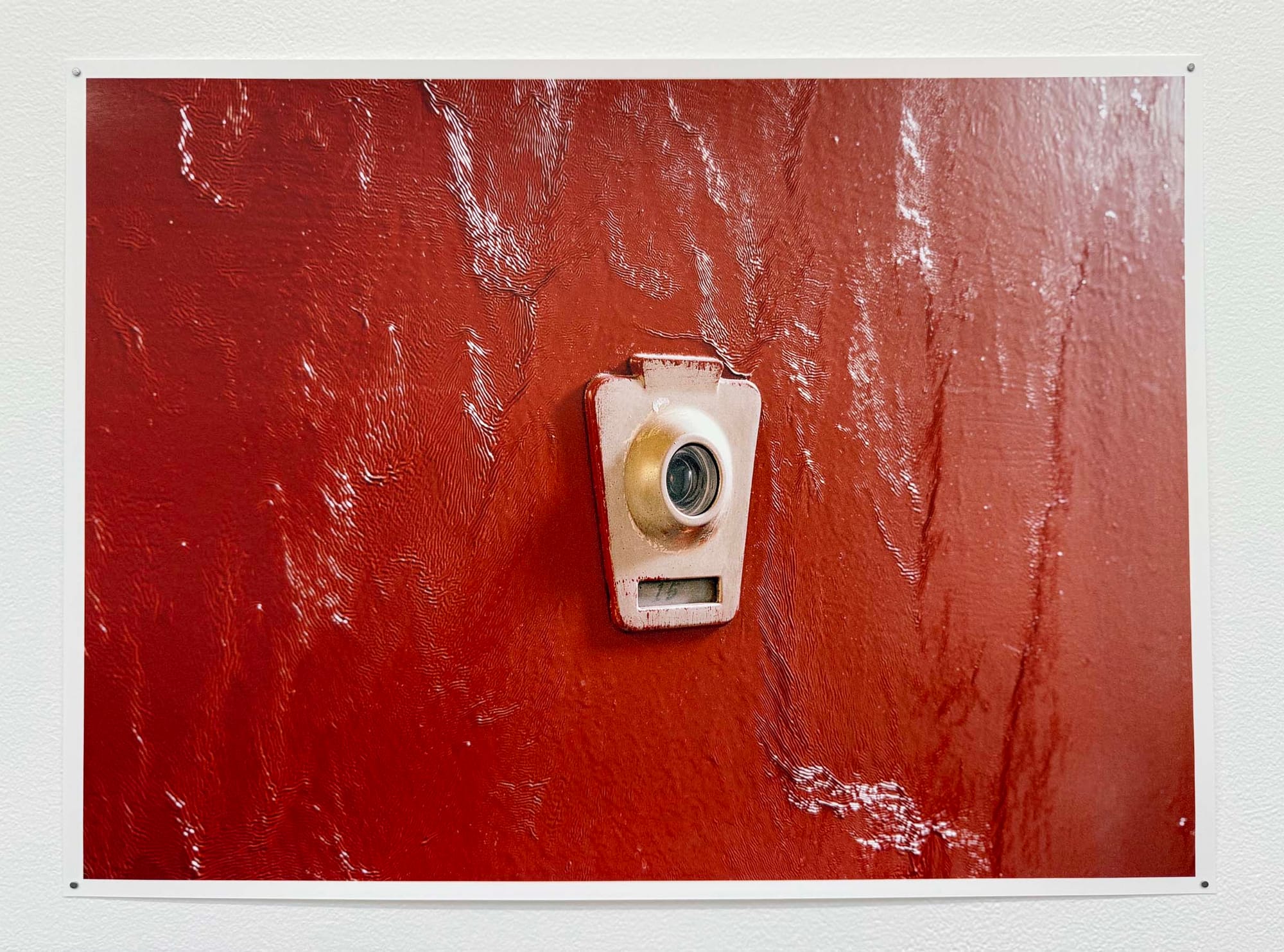 Holton is an insider’s outsider, or maybe vice versa: A lifelong New Yorker of mixed Chinese and “American” descent, as the press release confusingly puts it, he grapples with a “sense of detachment from his Chinese roots” through this series, “bridg[ing] the gaps in his own identity through the lens of another family’s experiences.” Indeed, thresholds feature prominently. The ajar apartment door in “Passport Photos,” the first work on view, seems like the proverbial open door to the show for viewer and photographer alike. “Front Door” (2005) captures the Lams’ thickly painted apartment door from the outside, as if Holton can’t quite work his way inside.