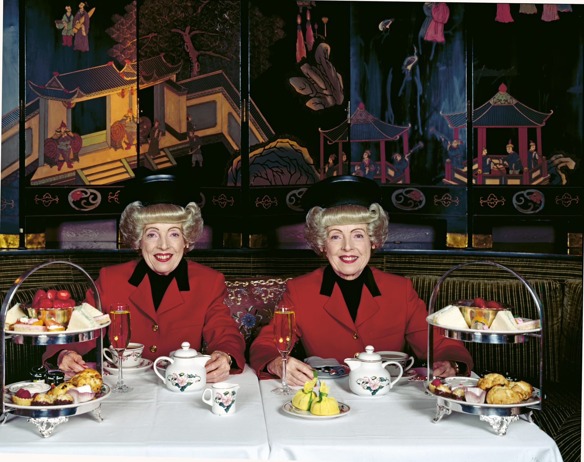 San Francisco's most famous twins, Marian (left) and Vivian Brown, photographed in the 1990s, enjoy afternoon tea (photo Carol M. Highsmith, Library of Congress Prints and Photographs Division Washington, D.C.)
