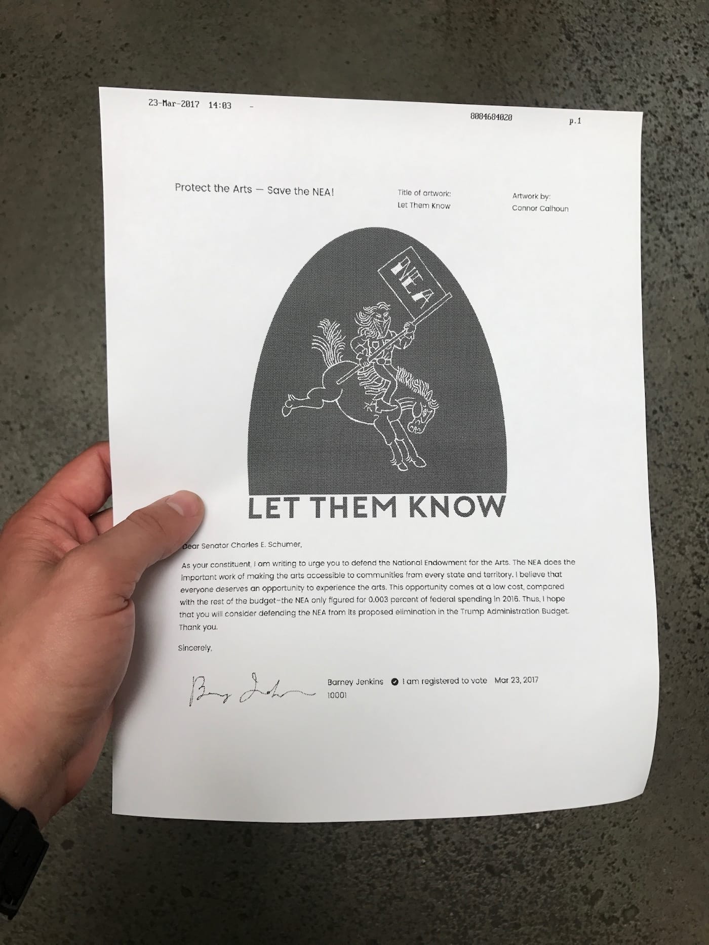 Calling your representatives or mailing them postcards are effective ways to get your thoughts across to the government. A third option that blends the benefits of both is to send them a fax: the delivery is immediate and the message material, allowing you to get creative with visuals. One group harnessing the power of faxing is Los Angeles-based design studio Use All Five, who recently launched Artifax, a project focused specifically on highlighting the importance of the National Endowment for the Arts (NEA). The NEA — along with the National Endowment for the Humanities and other agencies — is one of President Trump’s targets to cut as part of his proposed budget, and to urge Congress to save it, Use All Five is fighting back with artistic faxes.