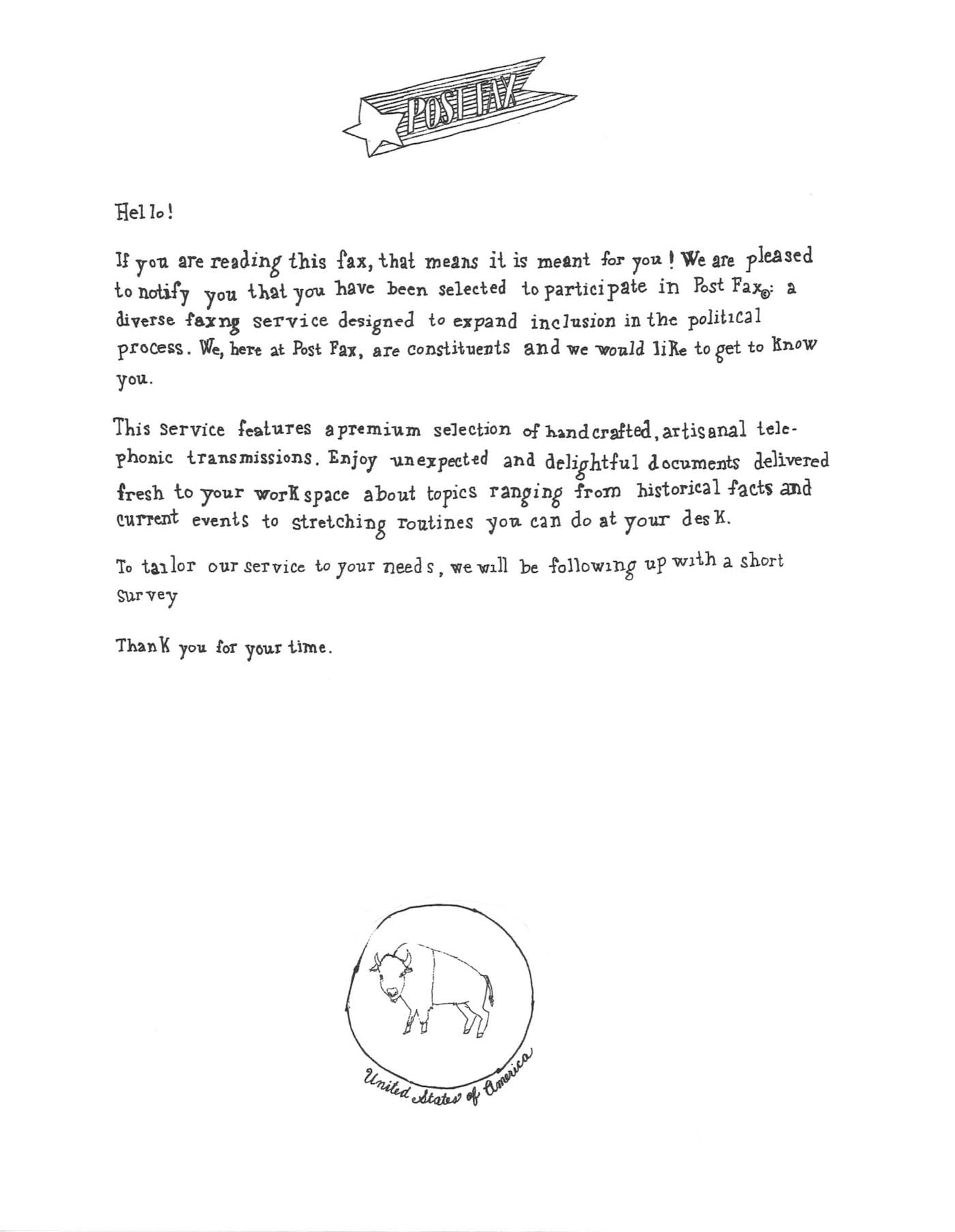 Launched in January, Post Fax is currently on a brief hiatus but intends to create more hand-lettered faxes soon. Within a few weeks, the artists will also start offering special, decorated fax machines to those interested in sending their own faxes, along with a manual for tips on political faxing.