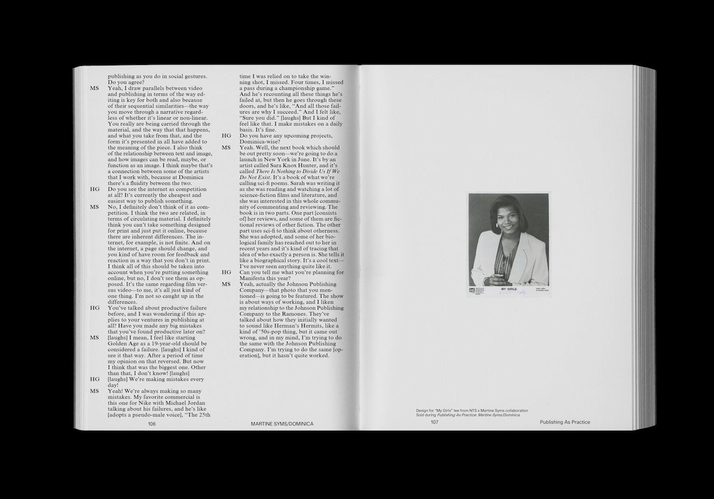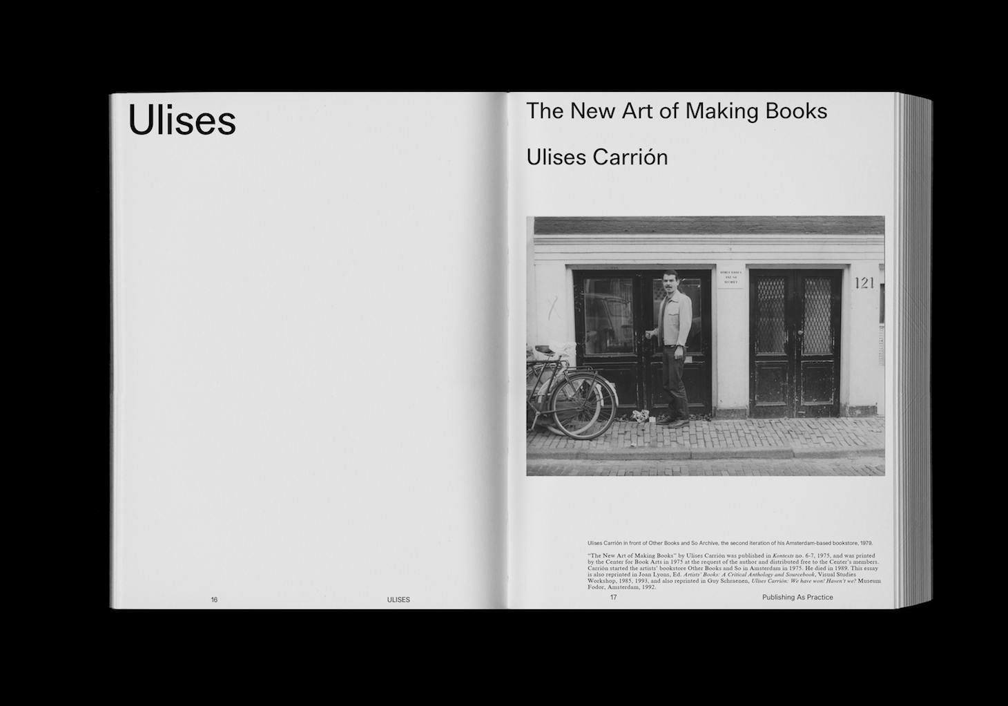 Publishing as Practice documents and reflects on the 2017–19 publishing residency at the Philadelphia bookshop Ulises, which hosted artist-publishers Hardworking Goodlooking, Martine Syms, and Bidoun. (Full disclosure, after covering the opening of Ulises in 2016, I have since worked with and befriended several of the founding members.) The softcover book with exposed sewn binding includes essays by the bookshop founders, photographs from the residencies, and interviews with and essays about each resident.