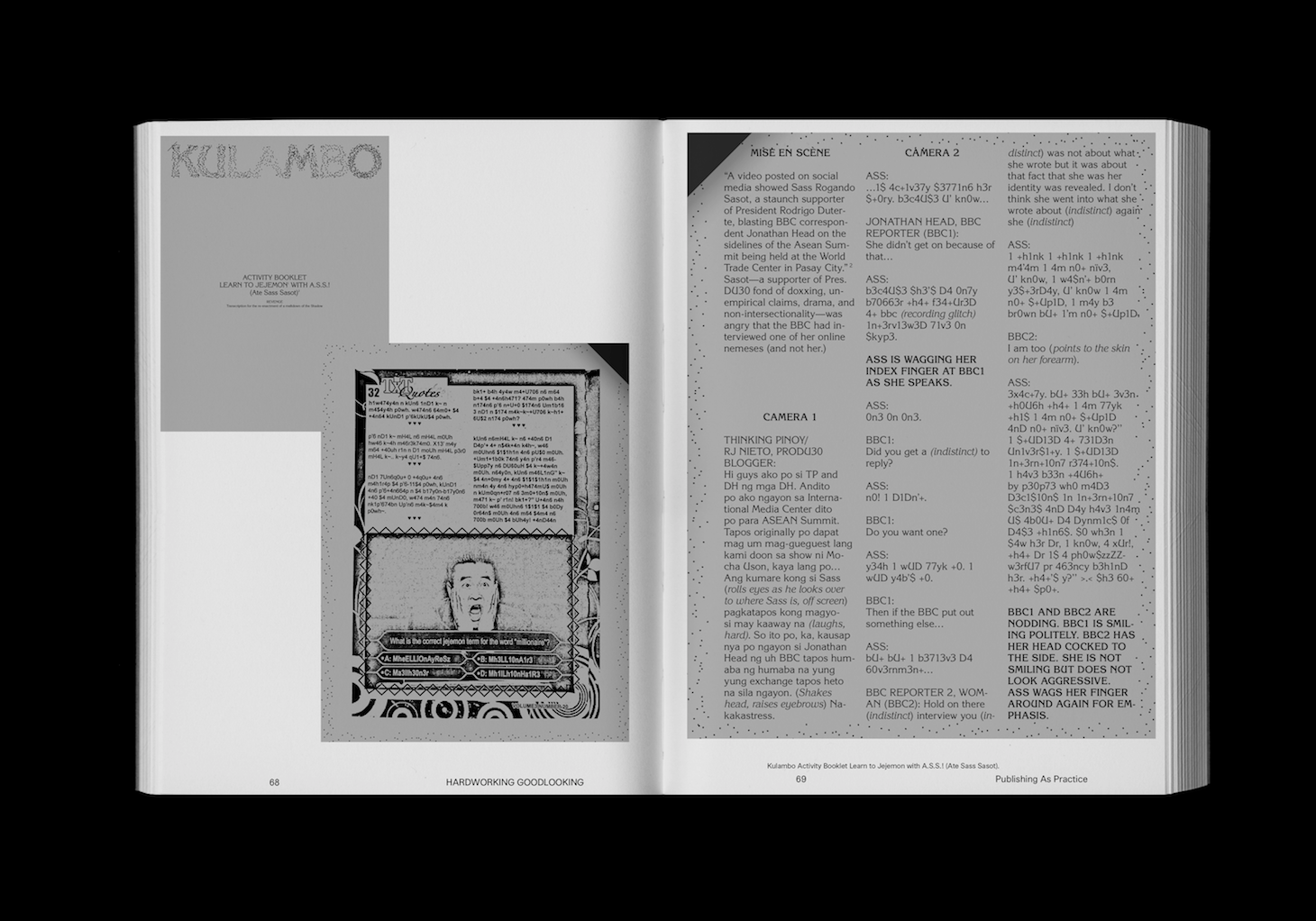 For Ulises, the central concerns are, who gets to occupy publishing spaces, and what does it mean to offer that up to artists and the public. “What does it mean to turn over a storefront or program to a group of international artists and thinkers? What happens when the public attends?” Romberger asks. For the Ulises residency, each artist or collective took over its bookshop/gallery space, including but not limited to selling books and printed apparel, leading workshops, holding digital and physical performances, and inviting the public to shop, sit, talk, and think as part of the practice of publishing. This highlighted “the shop as a central aspect of independent publishing — not only a site of commercial transaction, but also a locus of social exchange.” In the case of the artists at Ulises, the social exchange of occupying space was the first radical act. While the book does include images from the residencies, it relies primarily on interviews, as well as excerpts from the publications produced during the residency to capture the experience.