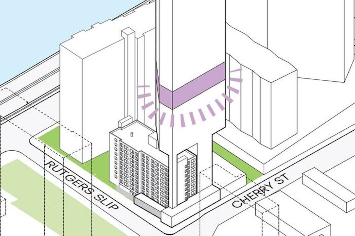 The proposed 100-story skyscraper is just one in a series of luxury complexes funded in part by L+M Development Partners, CIM Group, and JDS Development Group. The latter, along with its principal Michael Stern, would like to see its 1,000-foot tower cantilevered above the one-story brick building, sitting atop the Two Bridges Senior Apartments next door. But without Cherry Street’s development rights, that will now be difficult.