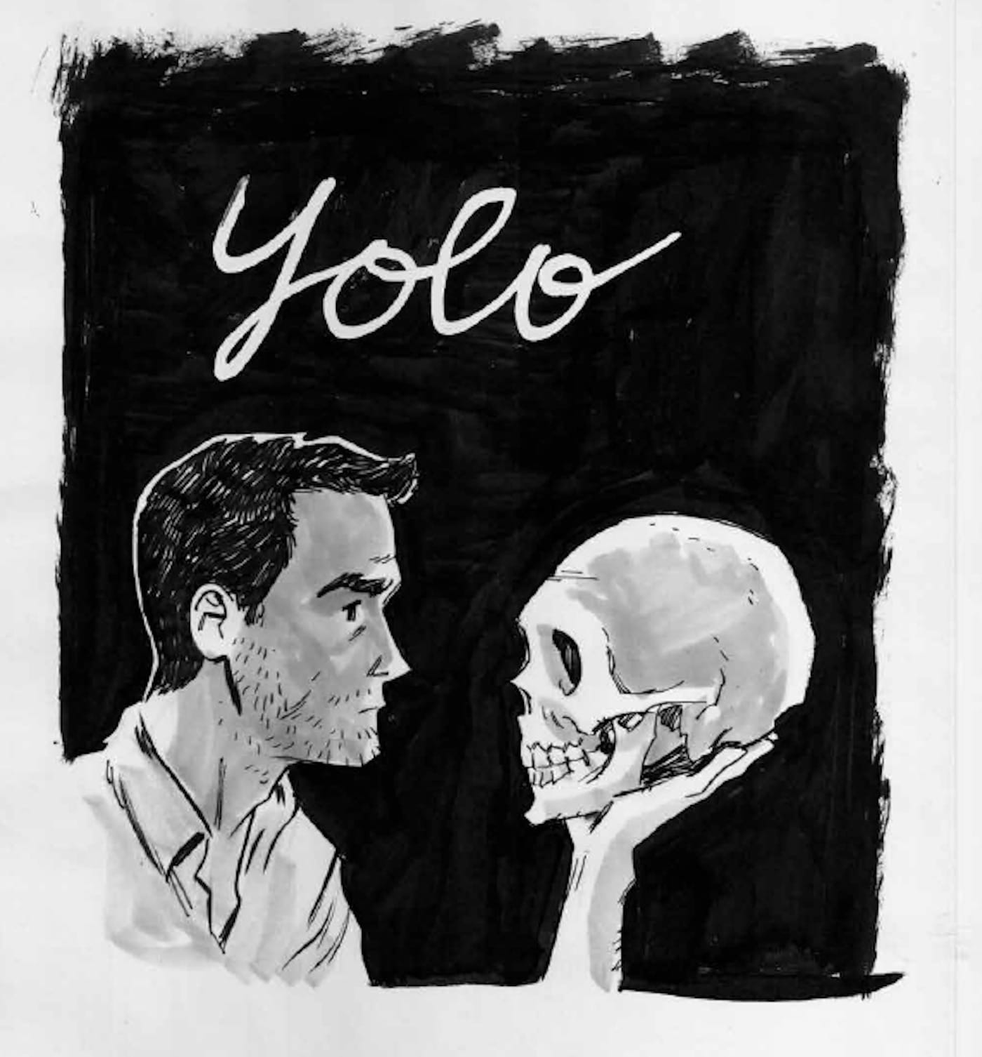 It’s not surprising that both artists grapple with exposing their illnesses, given how strong the stigma against it remains. Roberts includes a group of t-shirts with various mental illnesses printed on them. According to the narrator, “The website Bring Change 2 Mind sells these t-shirts with the intention of eliminating stigma.” In contrast, the next panel shows the view from Roberts’s bedroom window where a woman strapped to a gurney is being loaded into an ambulance. “Through our bedroom blinds Scott and I watched eight police officers apprehend and restrain a woman who had been shouting for 20 minutes. Grace also demonstrates a battle with disclosure. In the spread in which he first explains his “sads,” he writes, “I hate talking about it.” Images of people coddling him, strapping him to a hospital bed, and glamorizing self-medication demonstrate imagined reactions to his disclosure. Even the language I’m using now — words like “expose” and “disclose” — carry negative connotations.