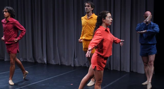 In her new piece Danza Permanente, choreographer DD Dorvillier engages in a new vein of artistic research, as she often does in her work. Here she’s decided to try to find a way for four dancers to transpose a musical composition into physical movement and gesture. In this case, she’s working with one of Beethoven’s string quartet’s (“String Quartet #15, in A Minor”), and she’s enlisted composer Zeena Parkins to help in the process of determining what kind of movement would best stand in for the notation in Beethoven’s score.