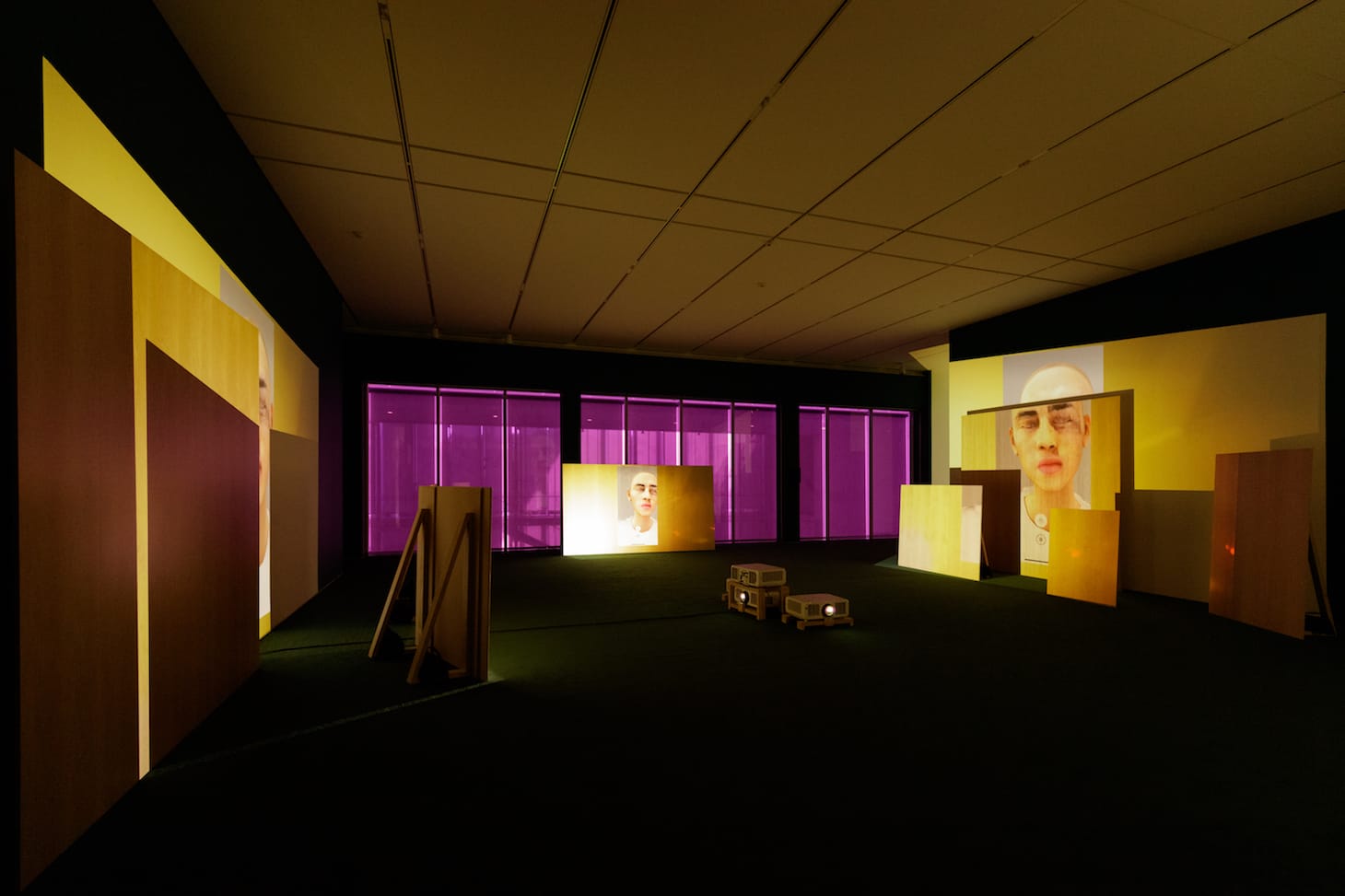 Within the galleries, two site-specific multi-channel video installations dominate the exhibition space: At those terrifying frontiers where the existence and disappearance of people fade into each other and Oh shining star testify (both 2019-21). These works layer materials that range from CCTV footage to digital avatars, text, deep soundscapes, and music, to convey two related instances of mourning and resilience in Palestinian life.