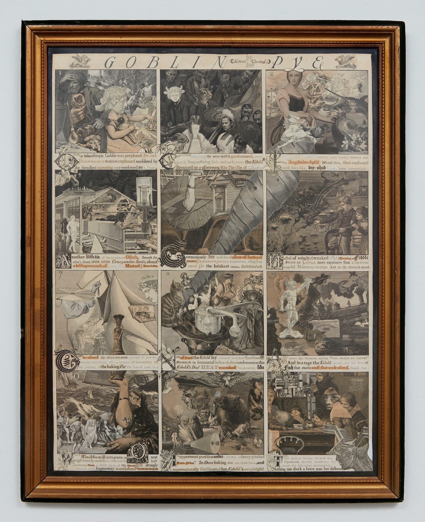 Jess (Collins), "Goblin Pye" (1961), collage, 26 x 20 inches
