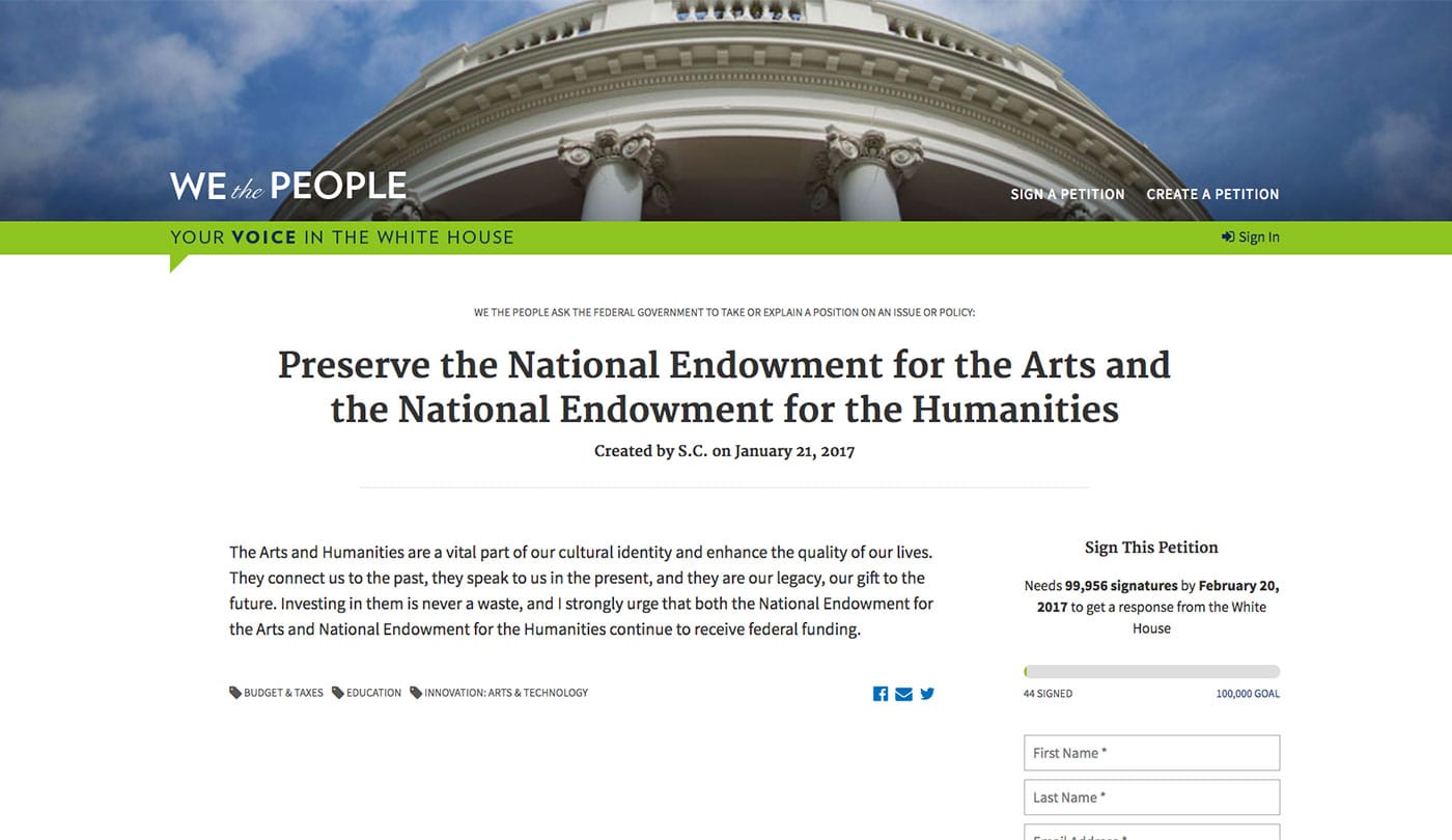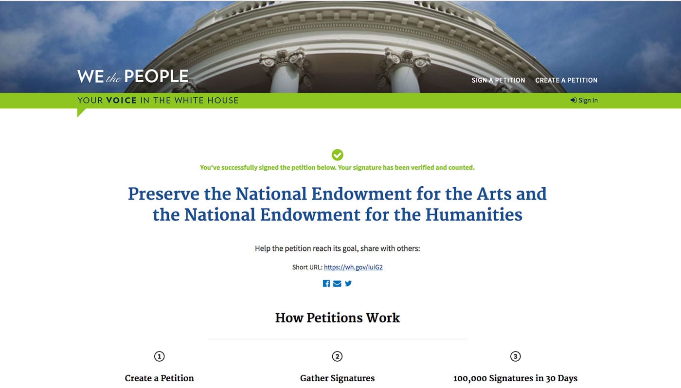 Two White House Petitions to Save the NEA and NEH Aren't Registering Signatures