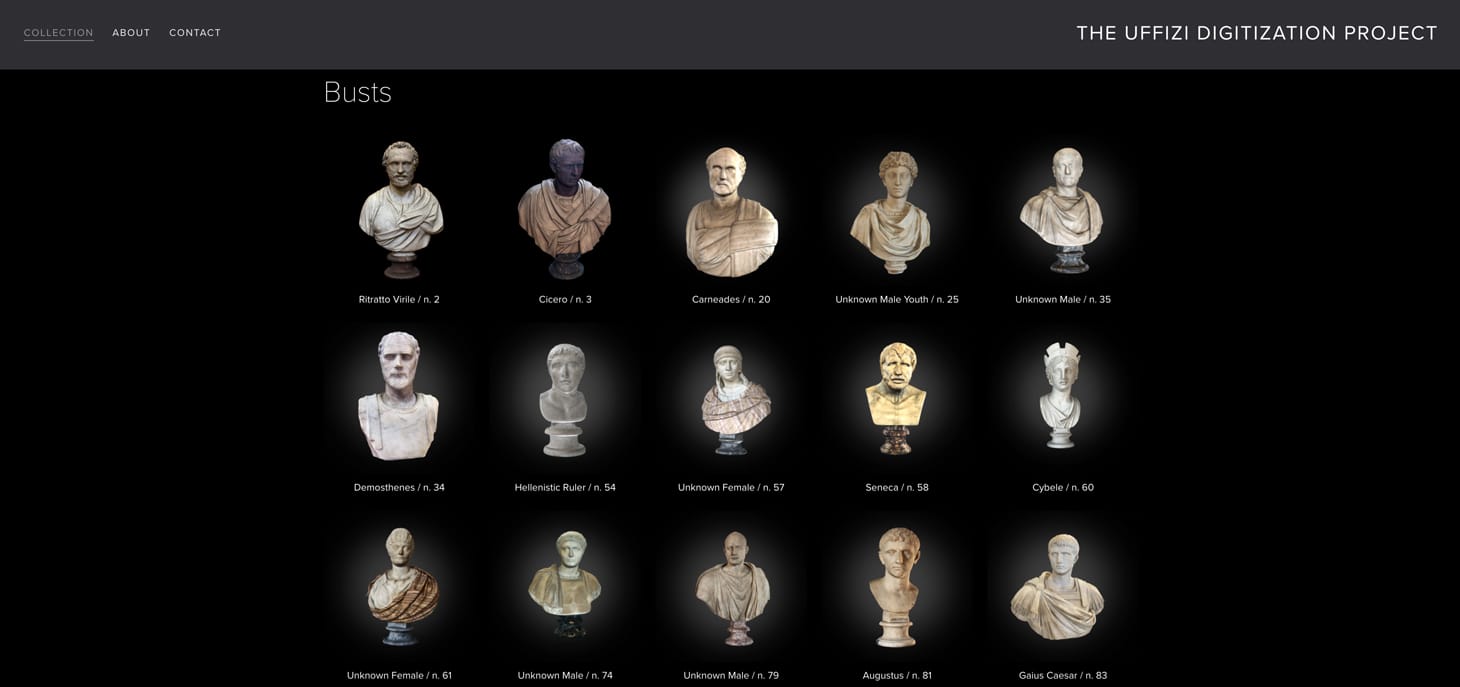 A collection of digitalized busts (screenshot of the Uffizi Digitization Project)