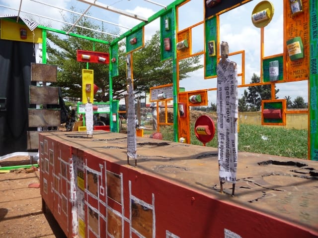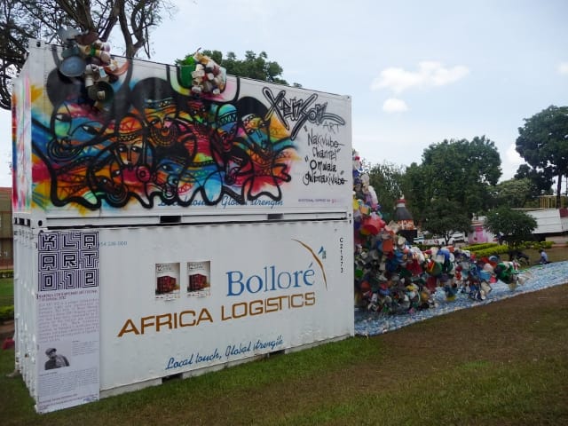 The main drawback of the show, I think, was the difficulty of navigating it. Although each location was clearly marked on a map, as a newcomer to Kampala I still had difficulty finding some containers, and at times simply gave up. People in the immediate area didn’t seem to be aware of the containers, and the one at the National Theatre proved especially difficult to find, even after I asked multiple theatre staffers. Some containers I located, only to find they were closed; hours for each container were unclearly marked. But when I did find the containers (and they were open), I was rarely disappointed. Artists’ assistants were invariably present to explain the work and its concepts.