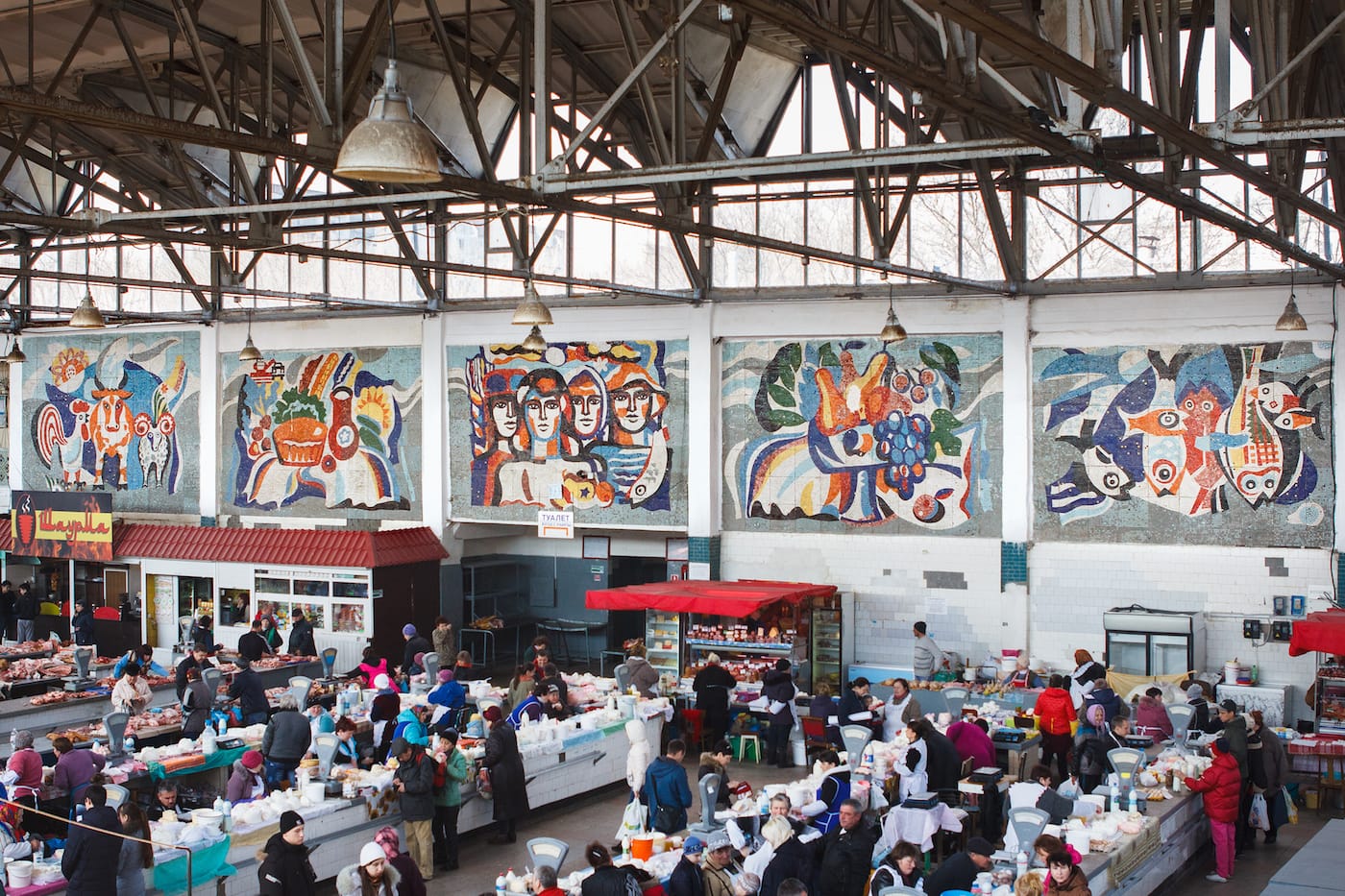 Ceramic mosaic by Valentyn Kovaliov in Cheriomushky indoor market, Odessa, published in Decommunized: Ukrainian Soviet Mosaics (photo by Yevgen Nikiforov)