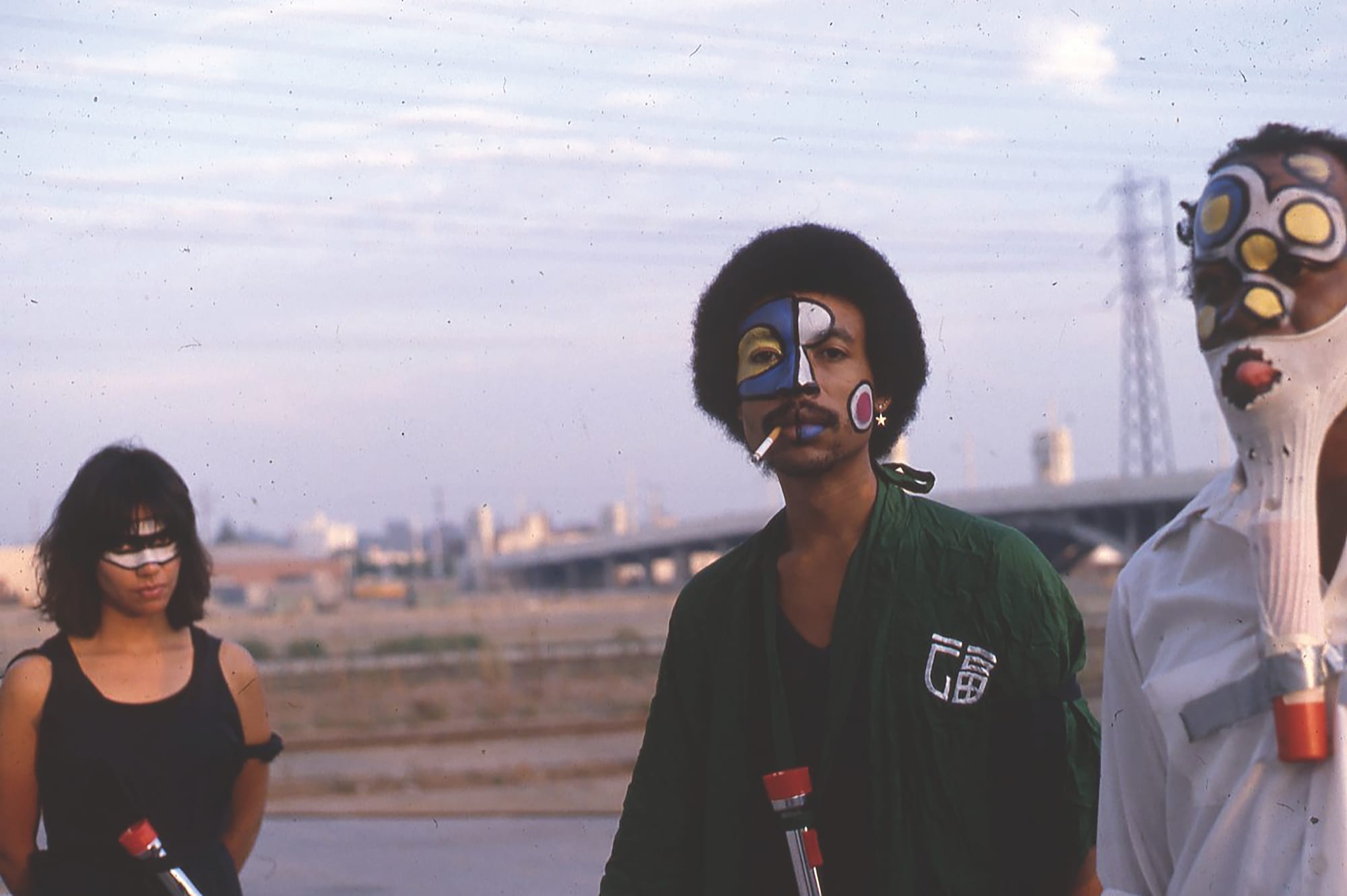 Jenkins was trained as a painter and muralist before he made the switch to video (he was one of the many artists who participated in the historic "Great Wall of Los Angeles"; led by artist Judy Baca, the half-mile-long mural depicts the history of California — highlighting Indigenous, Black, Latinx, and Asian figures and narratives). In the early 1970s, the Sony Portapak became the first portable consumer video camera, and artists like Jenkins were intrigued by the technology’s ability to circumvent and challenge mainstream media. After attending a Portapak workshop, he says he was hit with the “video jones.” He went on to study video and performance at Otis Art Institute (now Otis College of Art and Design) later that decade, where he was taught by Betye Saar and Charles White (fellow students included David Hammons and Kerry James Marshall).