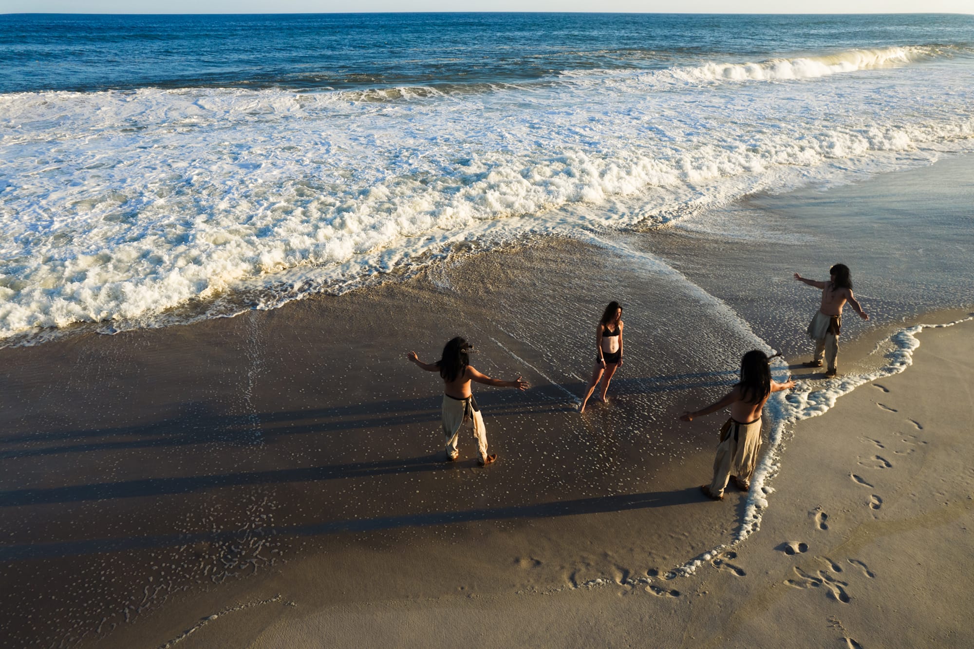 One of this year's awardees is Jeremy Dennis, who grew up in the Shinnecock Indian Nation in Southampton, New York, and whose practice focuses on the cultural and societal roles of Shinnecock people today. Works such as "Sacredness of Hills" (2020) and the series Beach Access (2022) place Indigenous people into environments now associated with the Hamptons — a pool, a perfectly manicured lawn, a decadent marble terrace — and in direct confrontation with the White people who inhabit them, creating images that bring the truth of colonization into brutally honest focus. Last year, he received Hyperallergic's Emily H. Tremaine Journalism Fellowship for Curators, during which he penned articles and designed an email exhibition on Shinnecock artistic legacies and his evolving curatorial approach.