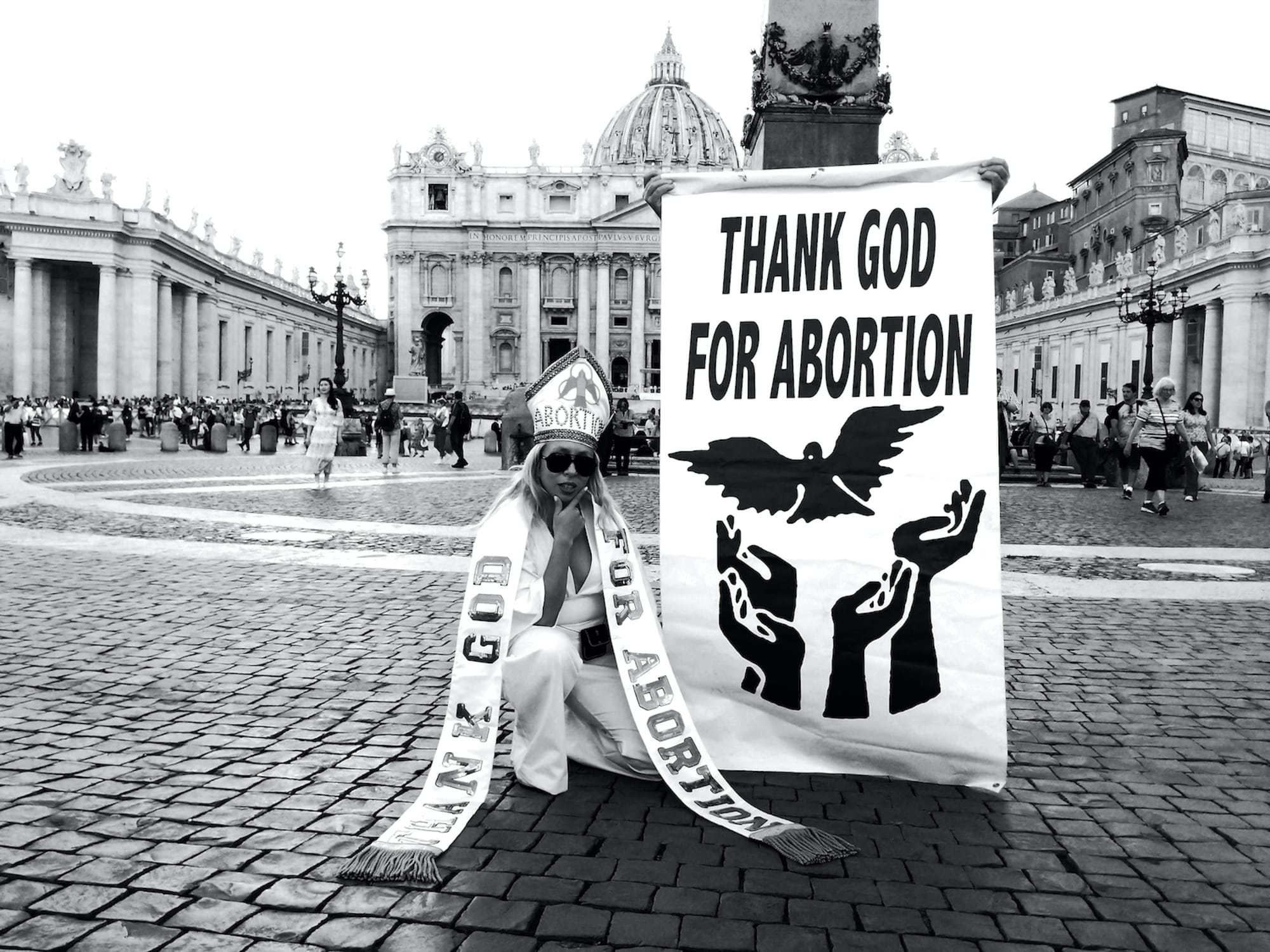 Another 2022 recipient is Viva Ruiz, a multimedia and performance artist who grew up in Queens. Since 2015, Ruiz has created Thank God for Abortion, a series that has become even more vital since the Supreme Court overturn of Roe v. Wade in June. In a work staged at the Vatican in Rome, Ruiz co-opts the aesthetic traditions of the Catholic Church to offer an ironic commentary on abortion, which the Church condemns. Other works in the series depict the titular phrase on banners during collective actions, and in one iteration, Ruiz creates a telenovela pilot of the same name.
