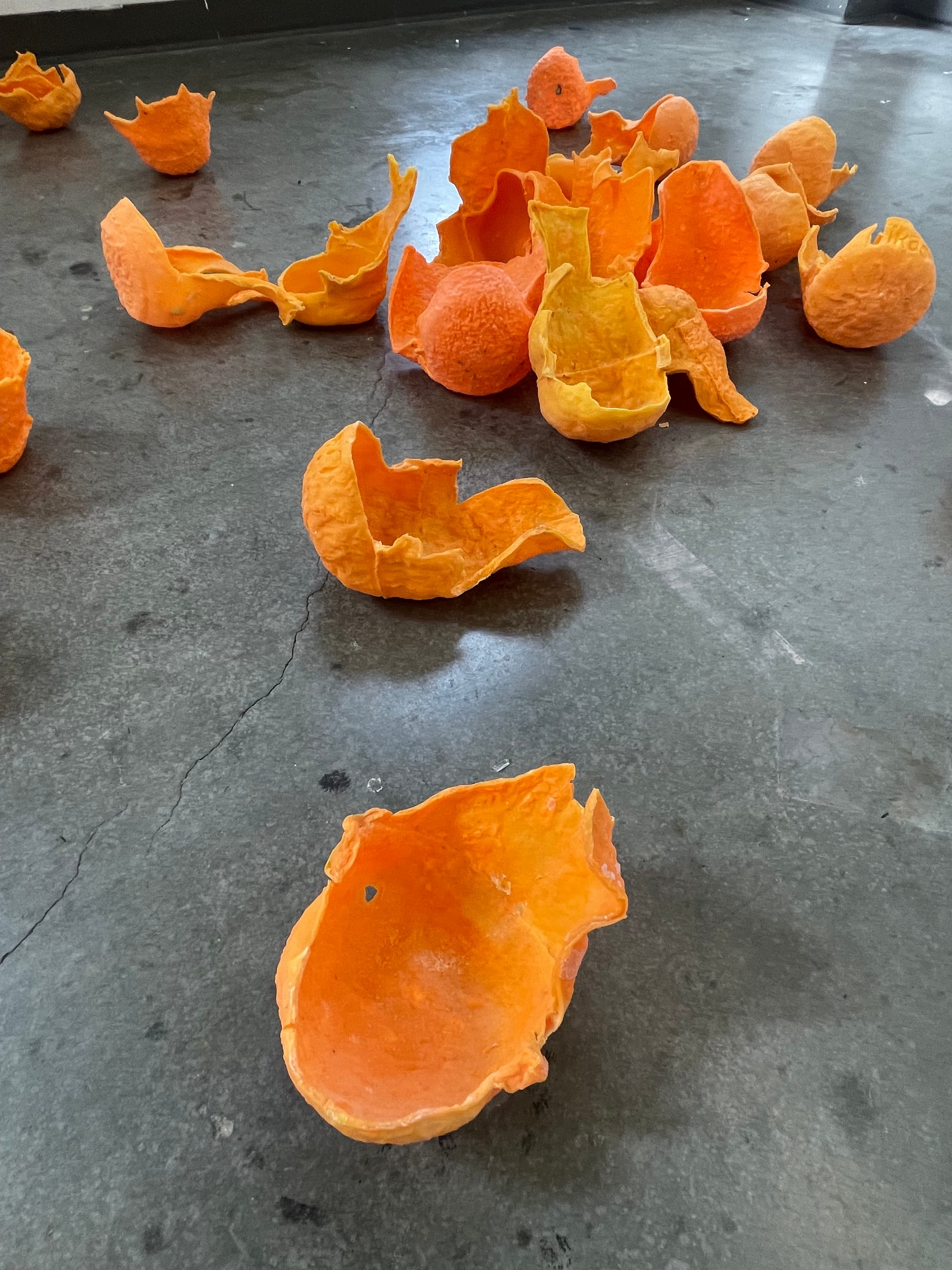 Seeing the works by the University of California, Irvine’s MFA students, many of which use leftover material site-specific to the campus, lead me to wonder if they also constitute a kind of leftover material of time.