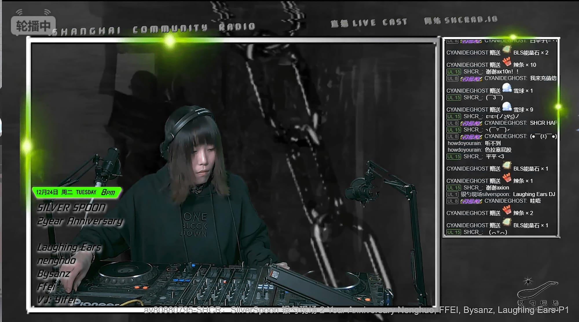 The DJ Laughing Ears playing a set for Shanghai Community Radio’s live-streamed festival. (Screenshot by Josh Feola, reposted with permission.)