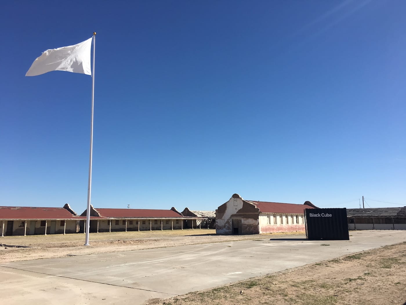 The decision to produce a flag from white cotton corresponds to its location. The Rio Vista Farm resides in the center of a cotton field. Mexican labors have been, and continue to be, a part of the very fabric of this country, along with others unrecognized. The many individuals who work to provide clothing and fabrics in the textile industry; food on the dinner tables; construct our cities; serve in our militaries; work in our factories; and serve as nannies raising American children.
