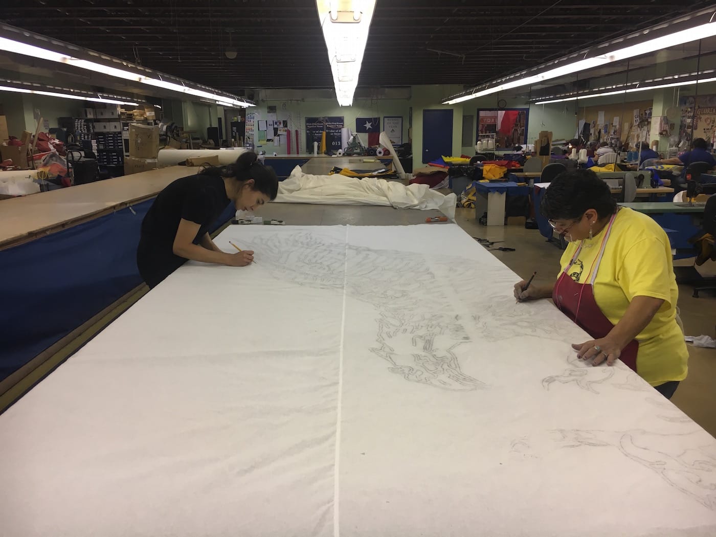 AC: I think it’s a ringing of the bell. A call to attention. When I was invited to be an observer at UN human rights cases, there were so many nations representing a victim or a family, and so many of those cases were universal. They were different, but so similar: fighting for a person. What I’m hoping for is an acknowledgement that other communities were helping in this country. So many individuals still work relentlessly — like the woman who is making this flag, Lucy, at Dixie Flags and Banner Company. She also made all the flags at the White House for the inauguration. Do we see this woman in the flags?