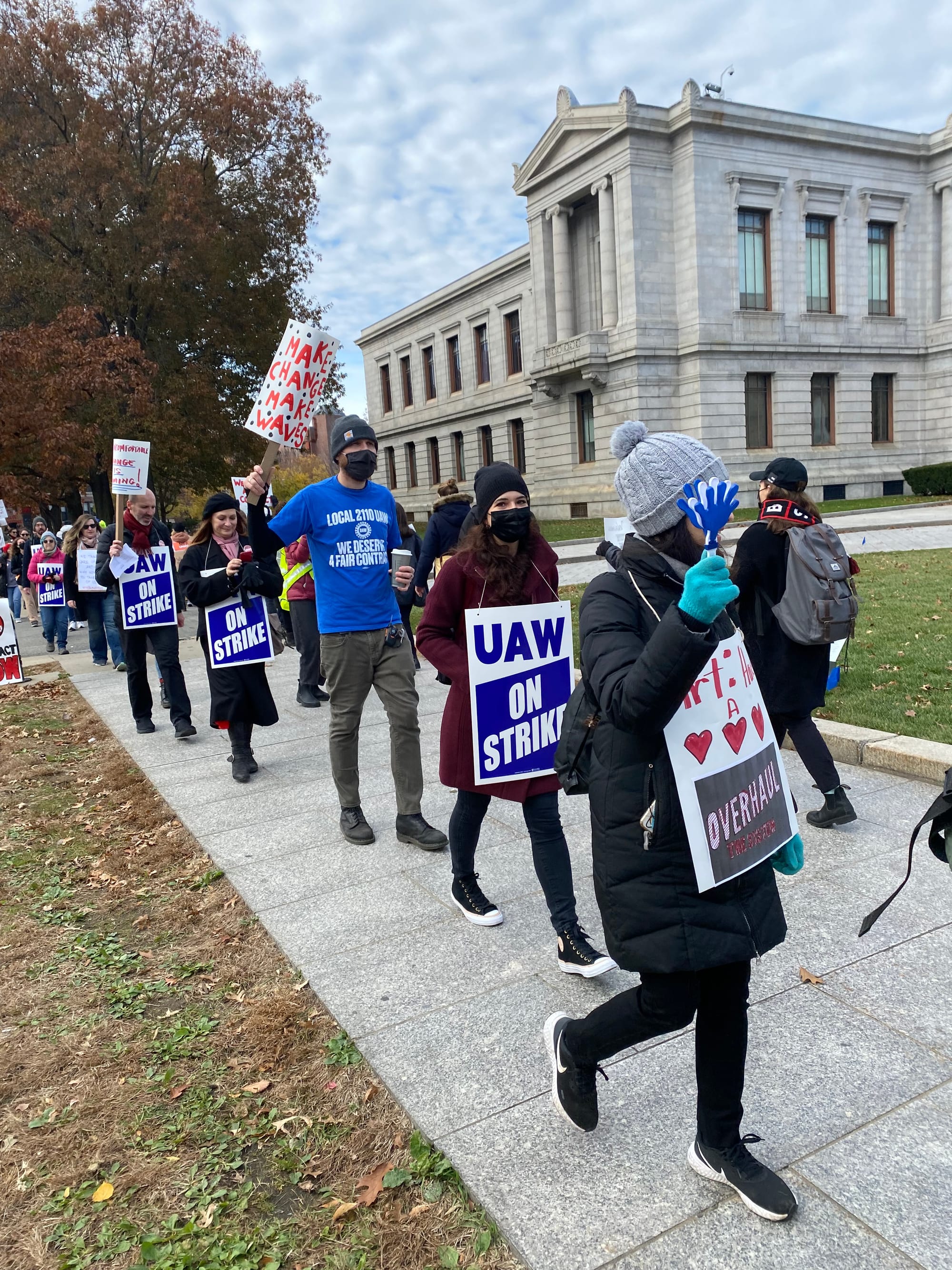 “Get up, get down! Boston is a union town,” strikers and local UAW supporters alike chanted in unison during a demonstration this morning, November 17.
