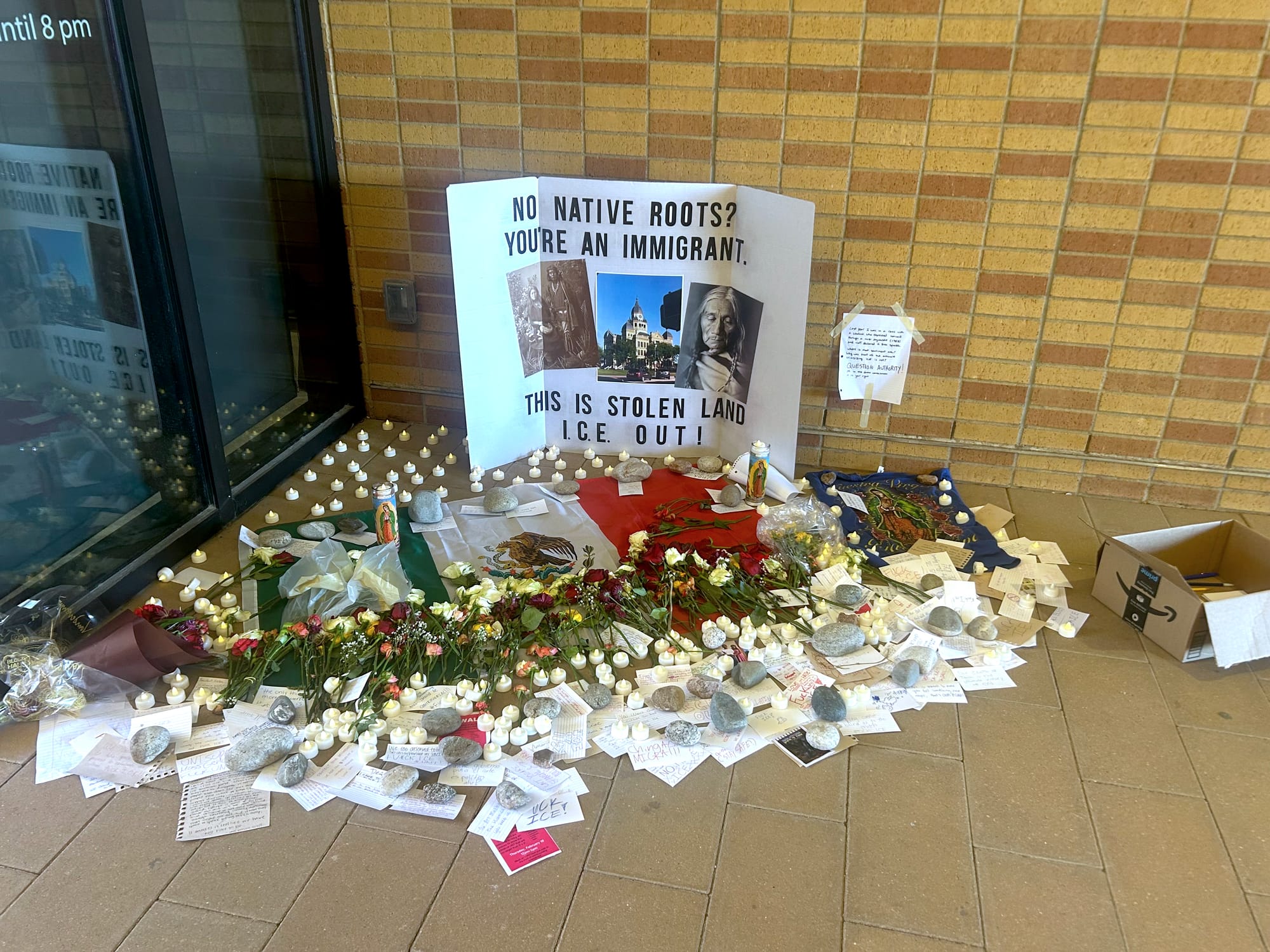 Undergraduate art history major Sierra Rose Dominguez, who organized the vigil action on campus last week, said students gave eulogies and left handwritten messages and flowers at the makeshift altar. “UNT, you have let your Latino students down,” read one message on an index card. “I’m a first-generation Mexican,” read another. “I’m heartbroken I didn’t have a chance to see this exhibit and now I never may.”
