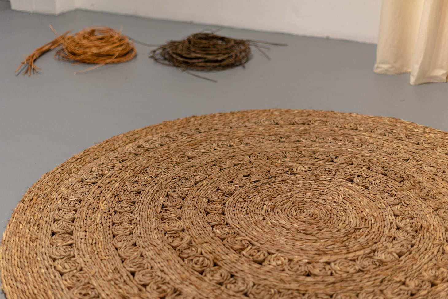 From this vantage point, Unravelling Collective Forms becomes much like a quipu in its ability to weave together multivariate forms of communication into a single document: the works within become nodes or knots, connecting centuries of knowledge and experience of resistance and resurgence. You can sense this if you attend some of the events organized in tandem with the exhibition. In April, one workshop combined traditional Tongva weaving techniques, taught by longtime activist Julia Bogany, with anarcha-feminist texts read by artists Mónica Rodríguez and Jorge González. It was odd to see two disparate forms of expression being joined together, and you may have gotten the sense that failure was imminent. But in watching the audience dutifully follow Bogany’s instructions on how to create children’s toys from palm fronds, while Rodríguez and González’s words echoed in all of our ears, there seemed to be a kind of synthesis between these two forms of expression.