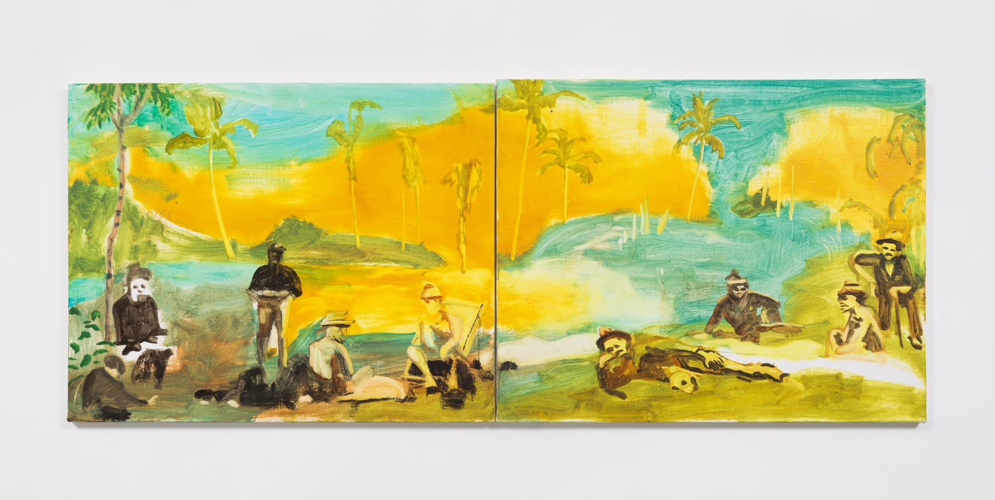 Seeing her culture fragmented in this way, Palileo came to terms with her identity as a Filipina- American. Since then, she has ventured to untether Filipino history from American exceptionalism. Eschewing Western narratives, her work recontextualizes the diaspora on its own terms, pulling customs from colonial clutches and realigning them in robust color palettes. Broad brushstrokes and thickly applied paints result in expressive scenes that exist somewhere between representation and abstraction, as if drawn from memory.