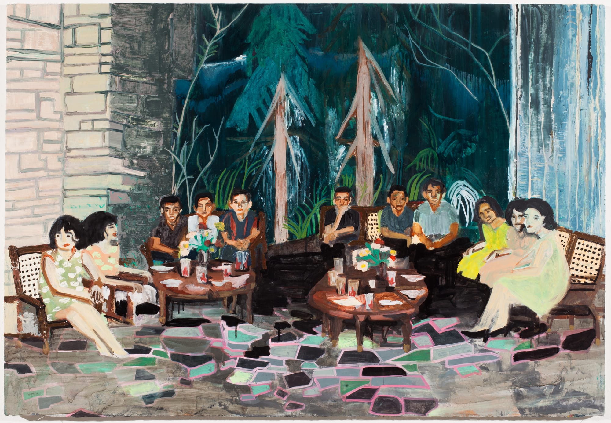 Maia Cruz Palileo, “The Visitors” (2014), oil on canvas, 48 x 36 inches (Courtesy of the artist and Taymour Grahne)