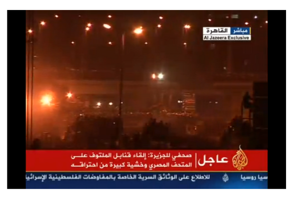 BREAKING: Egyptian Museum is burning! Molotovs being thrown at it! #Egypt #Jan25 Jazeera