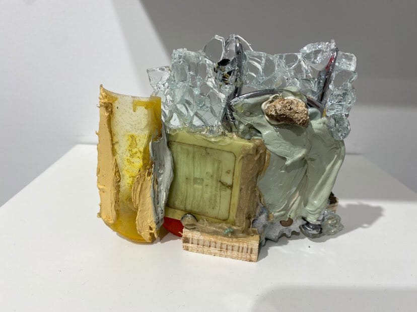 Currently, Condron is wrestling with objects that writer and artist Lucy Sante gave him. Among those items are a doorknob and a writing tablet. Also part of the piece are the keys of a typewriter that he found in Kingston, where Sante now lives. “I like to transform this stuff,” Condron said. “I try to make [my sculptures] embody the feeling of the person, rather than what they do.”