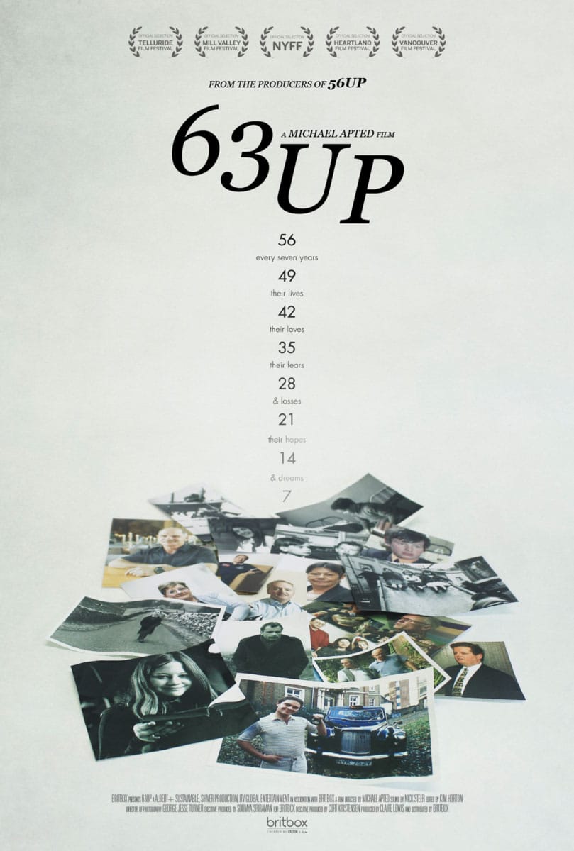 63 Up is the latest installment in the Up series, which has revisited a set of British people every seven years since they were children, tracking their lives and development.