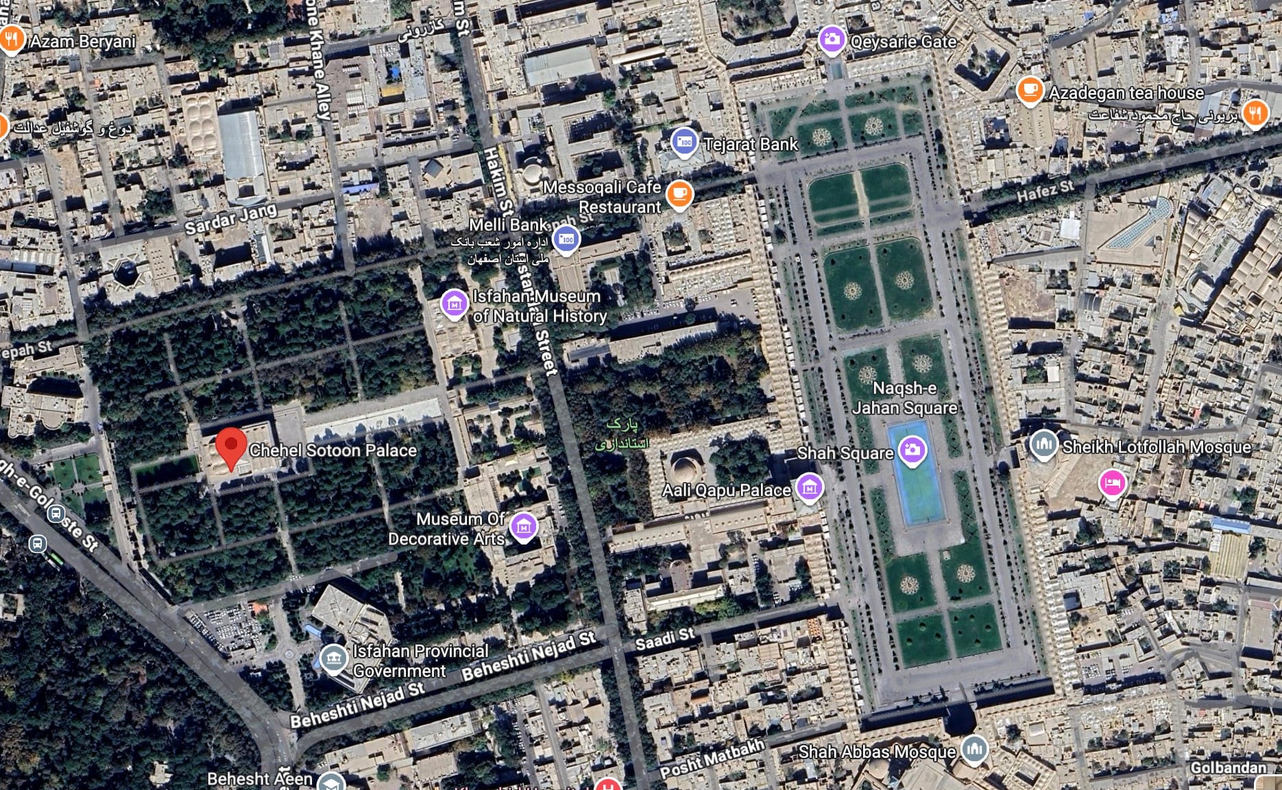 Opposite the government and museum complex is Nashq-e Jahan public square, recorded as Meidan Emam on UNESCO's World Heritage list as of 1979. Several dynastic masterpieces line the perimeter of the Safavid-era plaza, such as the Masjed-e Shah (Royal Mosque), the Sheikh Lotfollah Mosque, the Ali Qapu palace, and the historic Qeysarie gate.