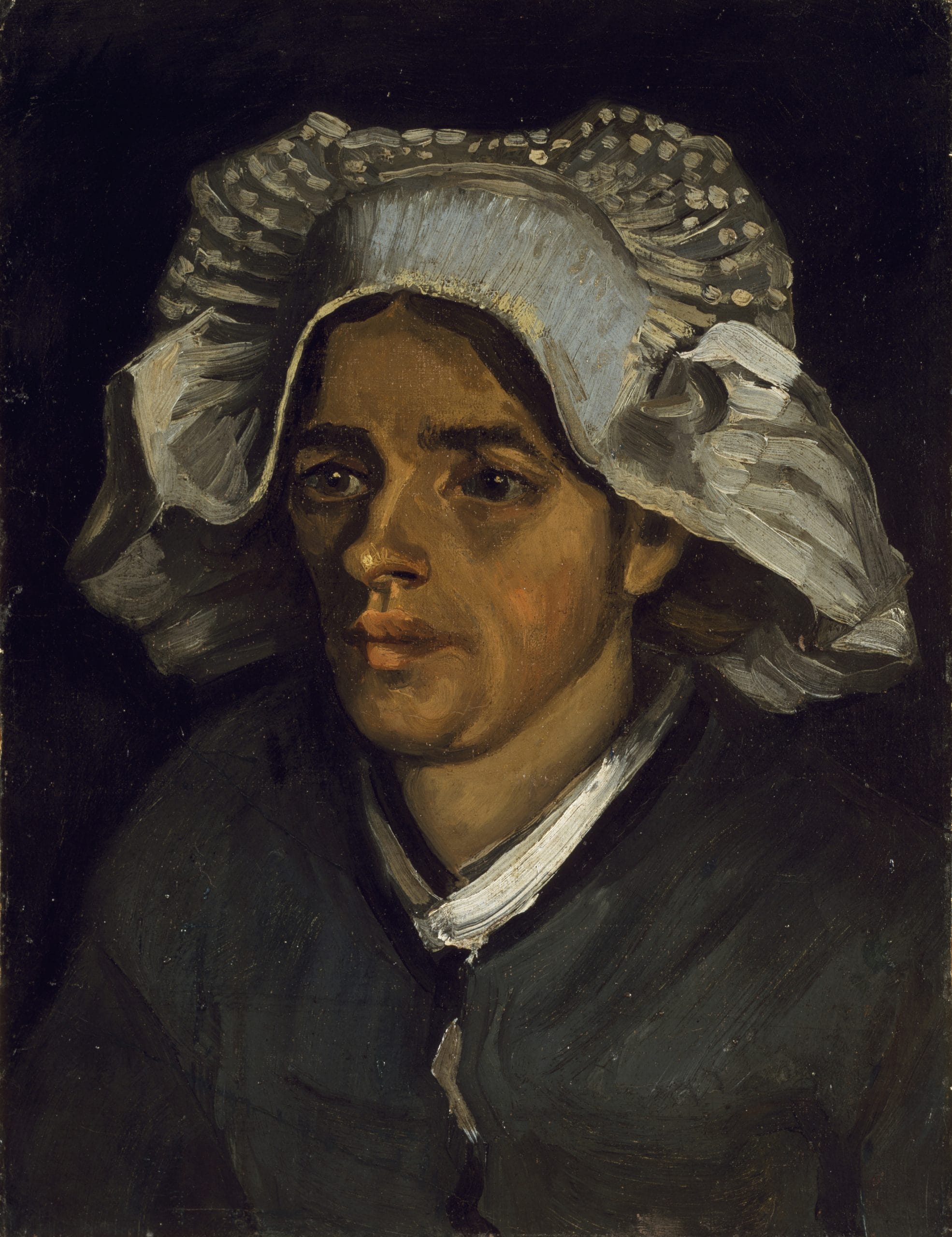 Sketched in oil and painted with broad brushstrokes, “Peasant Woman” is believed to portray Gordina de Groot, who also modeled with her family for Van Gogh’s 1885 masterpiece “The Potato Eaters.” The artist painted her in earth tones and a white headdress during his time in Nuenen, where he lived with his parents from December 1883 to November 1885. Influenced by French Realists Gustave Courbet and Jean-François Millet, he spent much of his time there painting farmers, weavers, and workers.