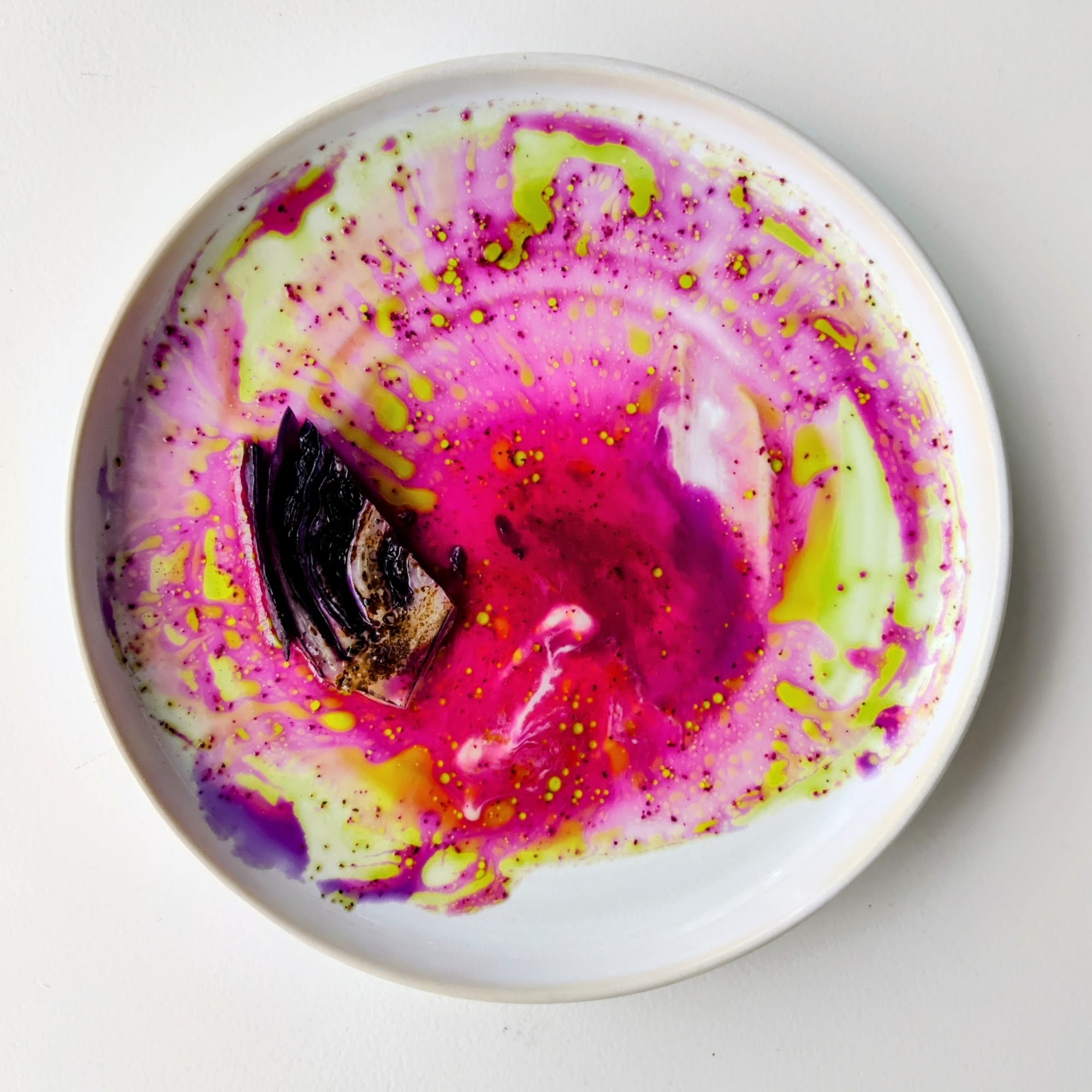 "As soon as the vinaigrette comes in contact with the red cabbage components, the colors start to fade, just like the red/blue pigments in van Gogh's paintings," de Witte wrote to Hyperallergic. "Our guests are in love with it, especially combined with the story and the beer brewed with absinthe we pair it with." The dish is on restaurant Feu's menu through May, and diners who include "#vanGogh" on their online reservations can sample it on the house.