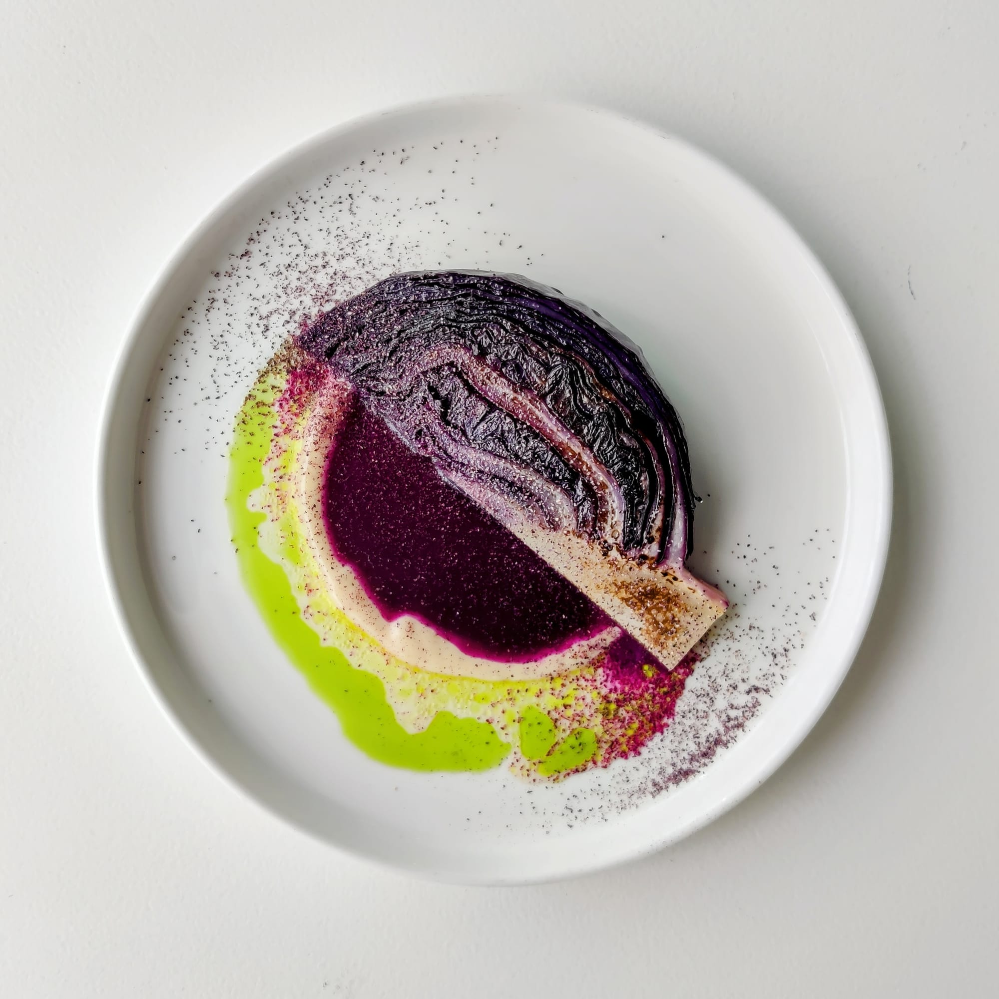 Inspired by both the painting and this experience, de Witte developed a red cabbage and garlic dish for his Utrecht-based restaurant, Feu, consisting of a poached red cabbage placed over a creme of puffed garlic and drizzled with a vinaigrette of lemon balm, tarragon, and van Gogh's favorite liquor, absinthe.