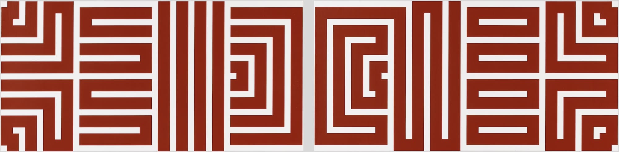 Vera Molnár, "Identical but different" (2010), diptych, oil on canvas, 19 7/10 x 80 3/10 inches (50 x 204 cm) (© Adagp, Paris 2024; photo by Philippe Migeat - Centre Pompidou, MNAM-CCI /Dist. RMN-GP)