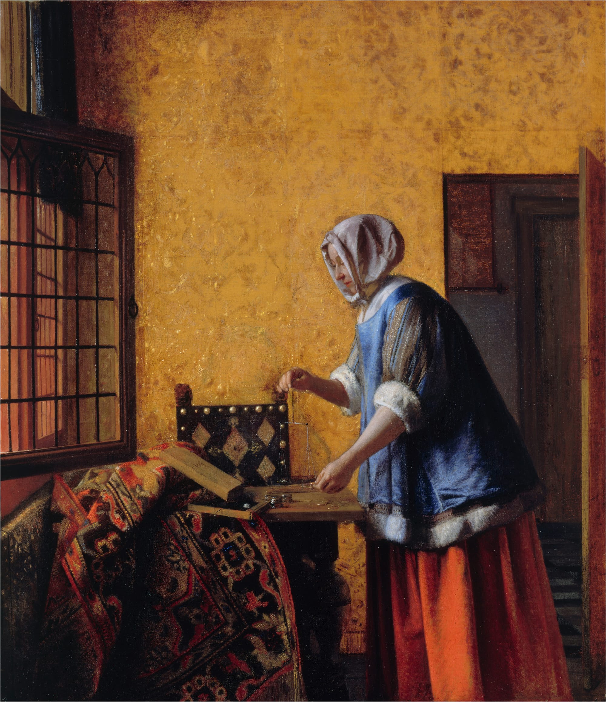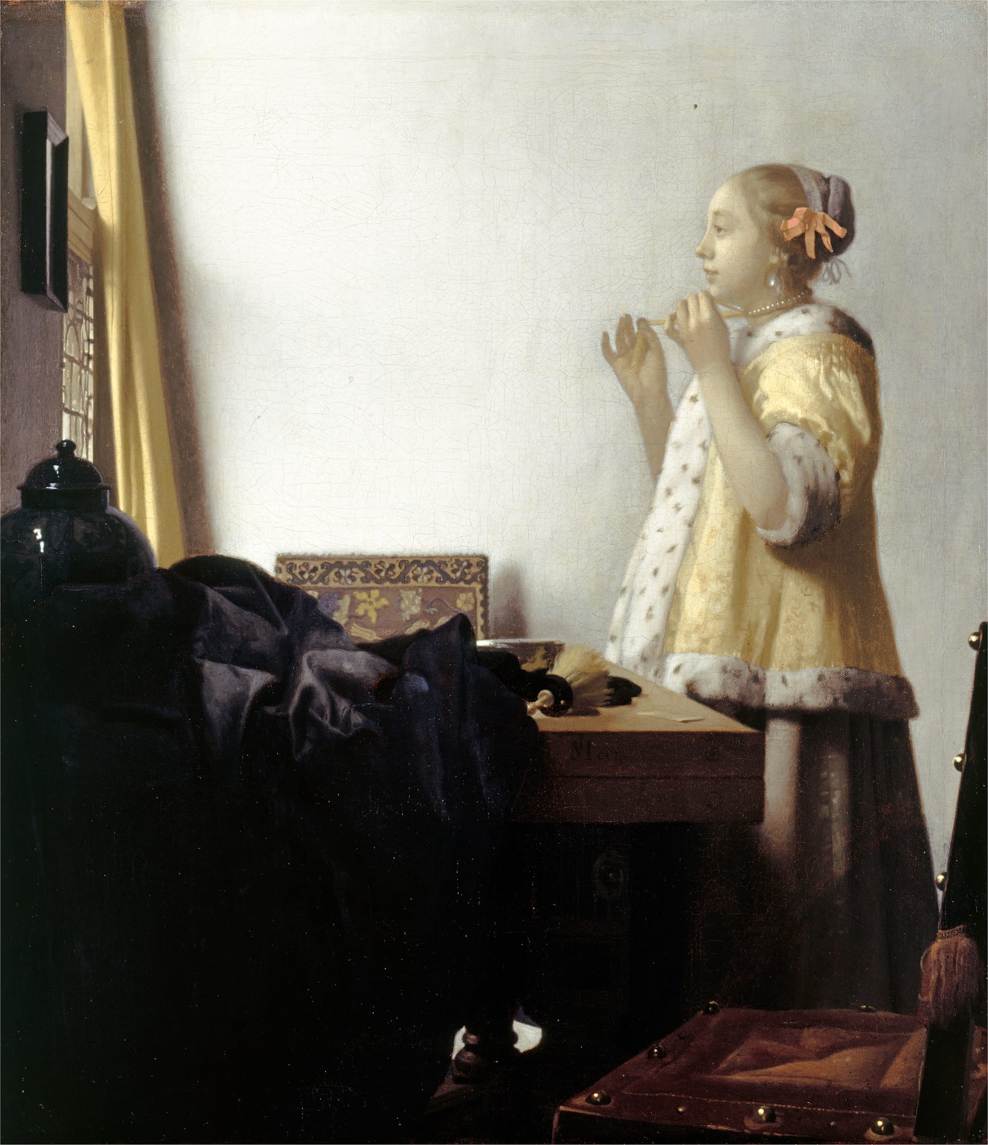 WASHINGTON D.C. — Around the middle of the 17th century, Dutch artists innovated a new genre of painting. It always features the interior of a comfortable home. There is often a window — almost always on the left — and a heavy, draping curtain. To this basic array, the artist may add: a man or a woman (a woman), tables, chairs, paintings, a mirror, a dog, a bird, a child, a maid, a doctor, a candle, a letter, a framed picture, a musical instrument. Something may be happening, but it’s not much — the kind of thing that you wouldn’t bother to tell anyone about later.