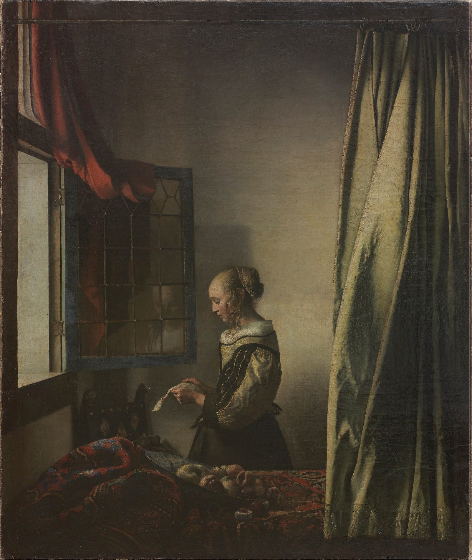 The female figure inJohannes Vermeer's "Girl Reading a Letter at an Open Window" (1657-59), art historians have long known, is not exactly alone in the room. As early as 1979, x-rays revealed a painting of a full-length cupid hanging on the wall behind her, partly shielded by a silky green trompe l'oeil curtain pulled to the side. This picture-within-a-picture, a hallmark of the artist's opulent renderings of Dutch interiors, was further confirmed using infrared photography.