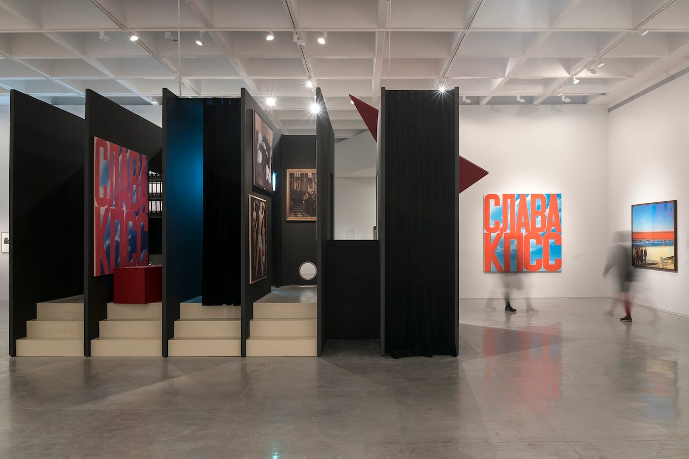 There is a roomful of books by various artist-revolutionaries, and there are 21st-century installations such as Vadim Zakharov’s walk through The History of Russian Art from the Russian Avant-Garde to the Moscow Conceptual School (2003) and Ilya and Emilia Kabakov’s Toilet in the Corner (2004), along with some paintings, including Double Self-Portrait (1972) by Vitaly Komar and Alexander Melamid and Erik Bulatov’s Glory to the CPSU (2003–5). All of these more recent artists are skeptical, or even cynical about the value of the revolutionary tradition; none of them are doing Suprematist paintings. Indeed many of them have emigrated to the West.